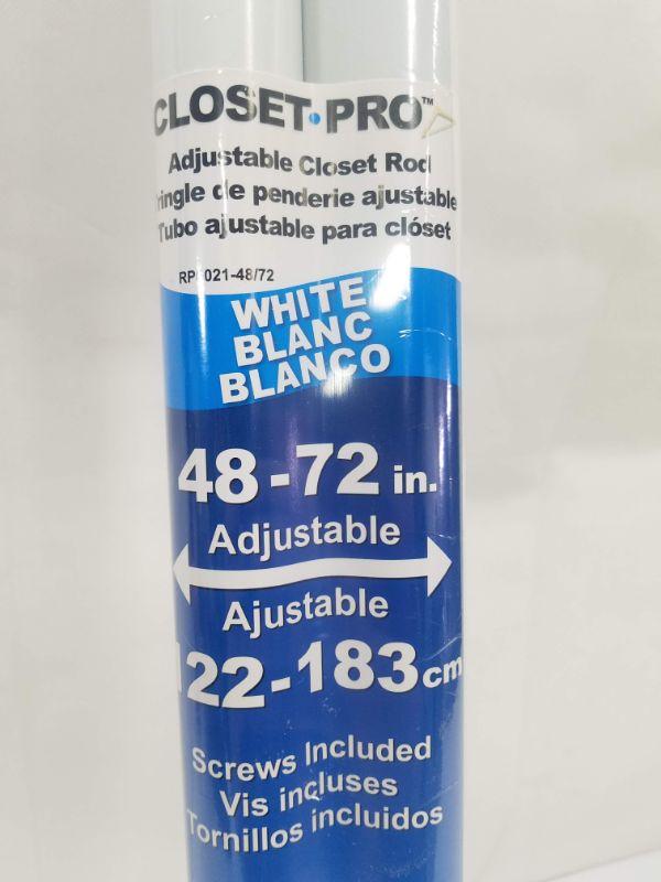 Closet Pro Adjustable Closet Rod, White 48" - 72" - New