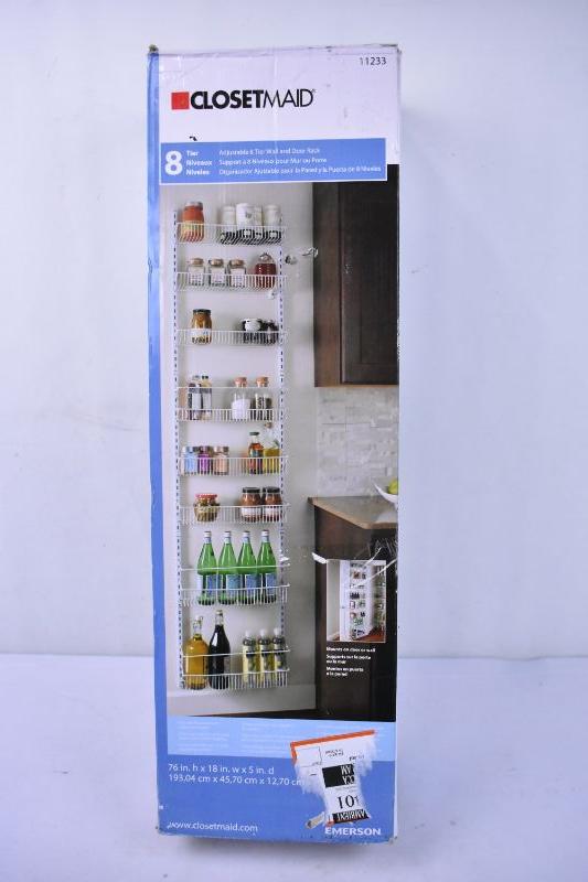 Closetmaid 8 Tier Adjustable Wall & Door Rack- New, Open Box