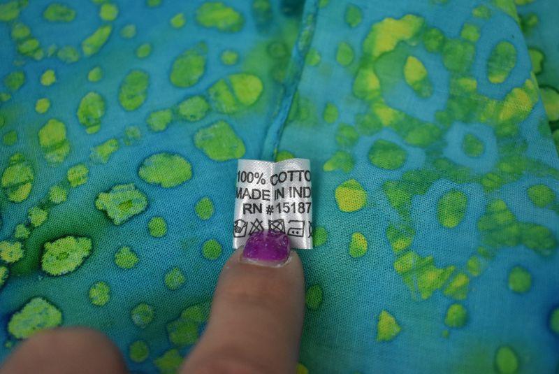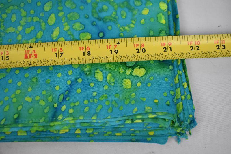 Cloth Handkerchiefs, Turquoise & Green/Yellow Print, Qty 14, 21" x 21.5" Finished Edges, 100% Cotton - New