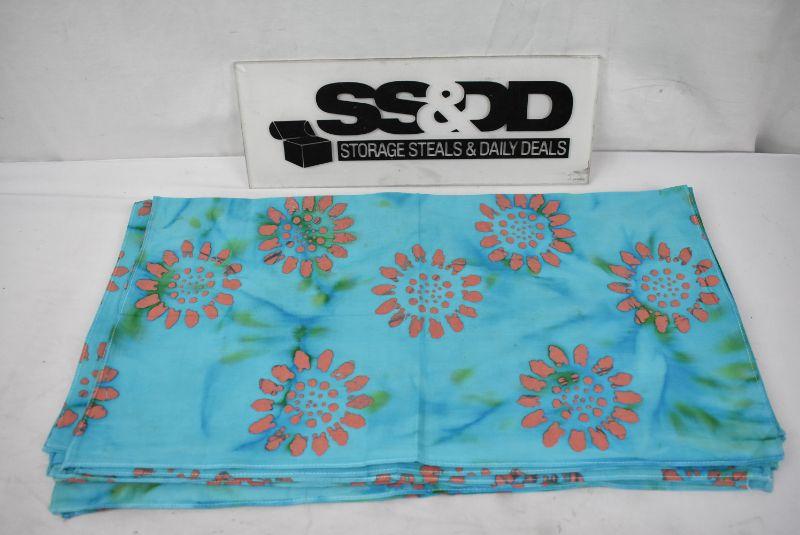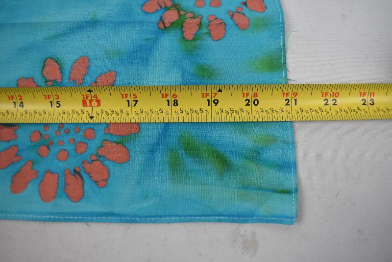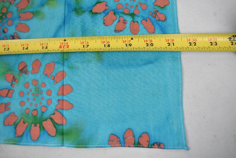 Cloth Handkerchiefs, Turquoise, Pink, & Green Tie-Dye Floral, Qty 11, 21" x 21.5" Finished Edges, 100% Cotton - New