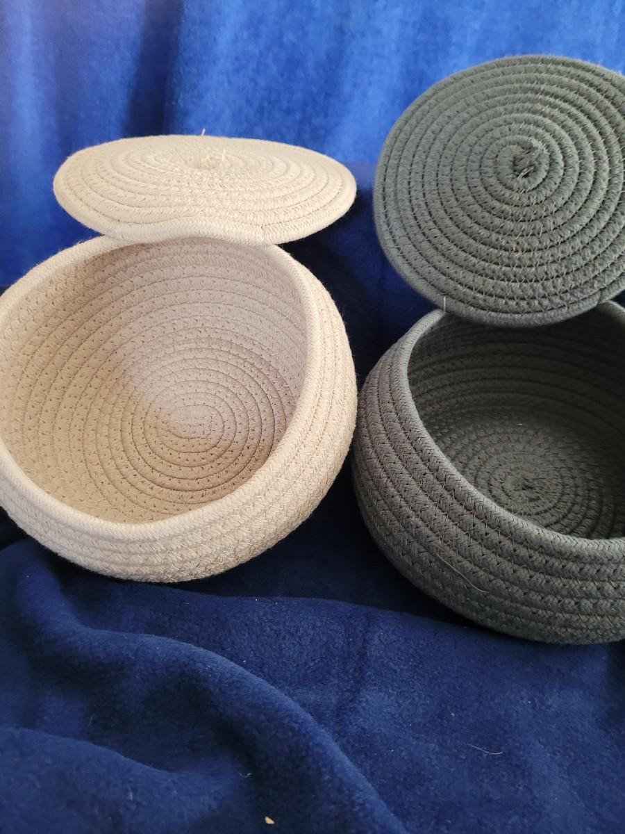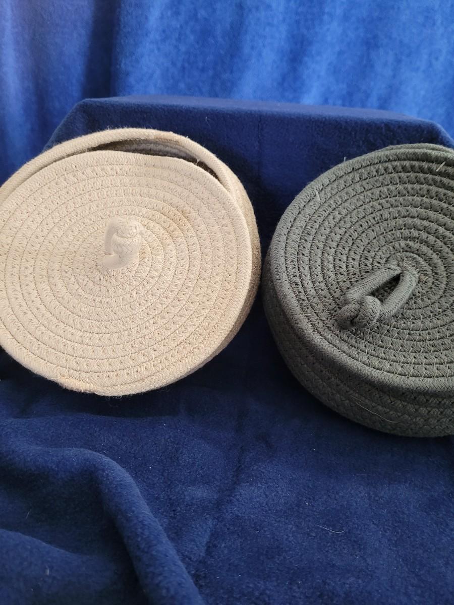 2 New cloth woven baskets 7in diameter Beige and Gray