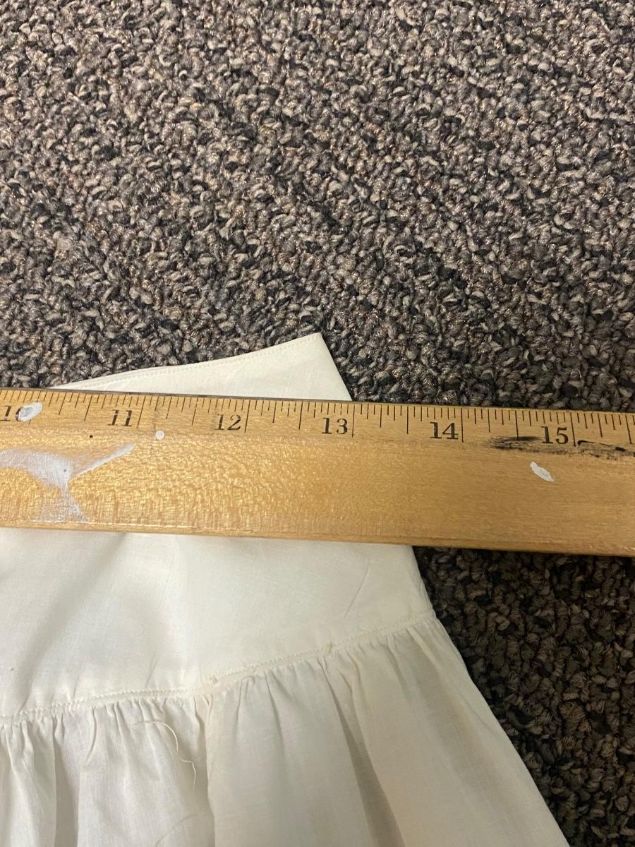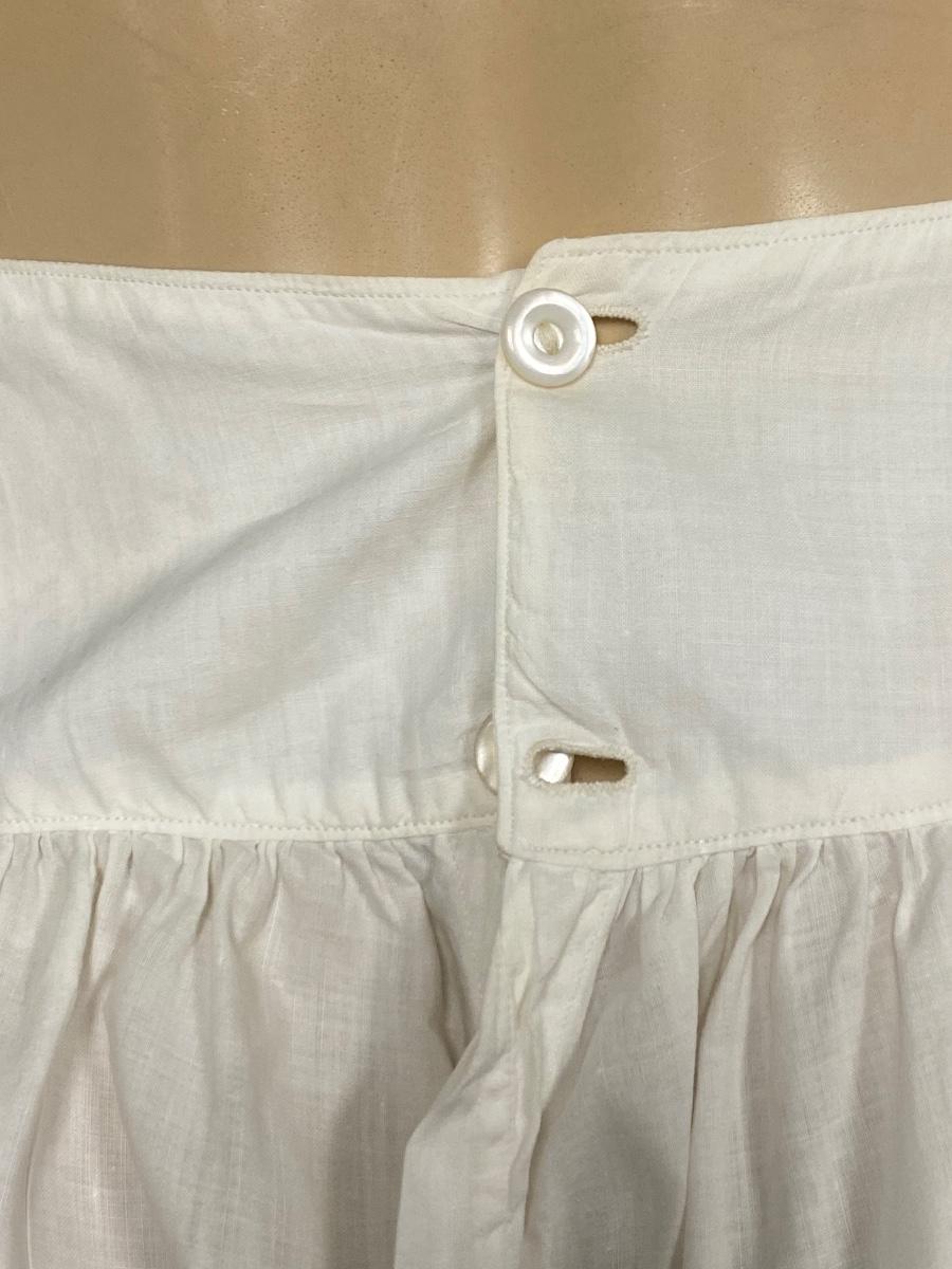 Antique Victorian White Cotton & Lace Bloomers Undergarment Shorts Knickers. White cotton with lace & ribbon trim. Double button in the back. The inner thigh and crotch is open. Waist measurement in photos.