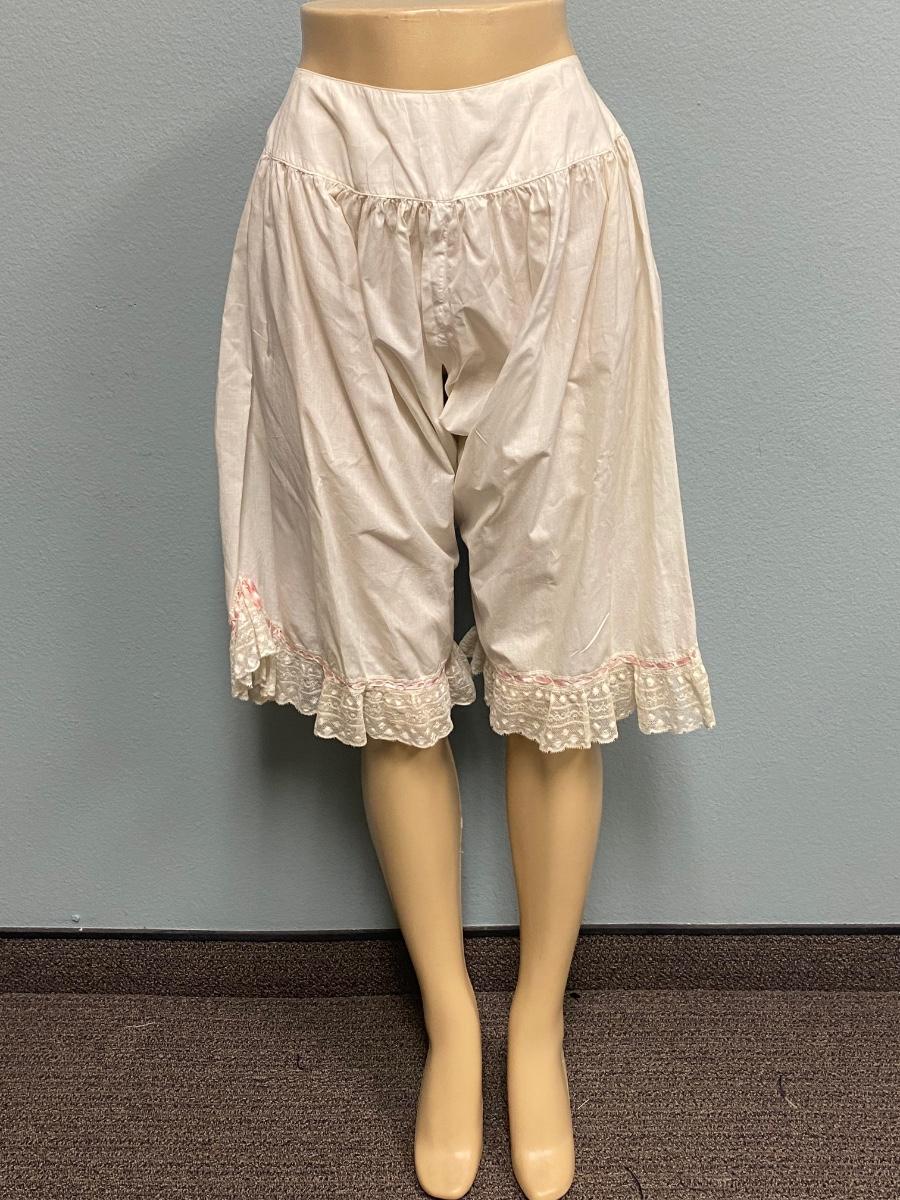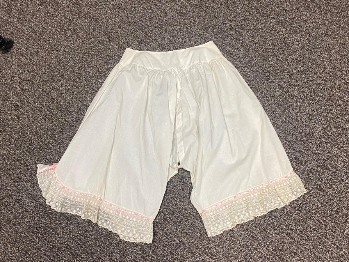Antique Victorian White Cotton & Lace Bloomers Undergarment Shorts Knickers