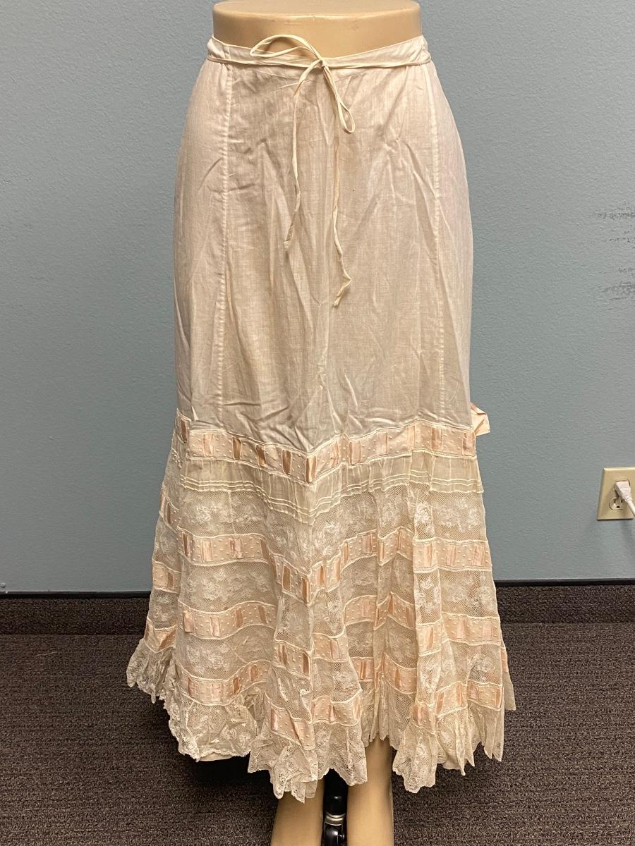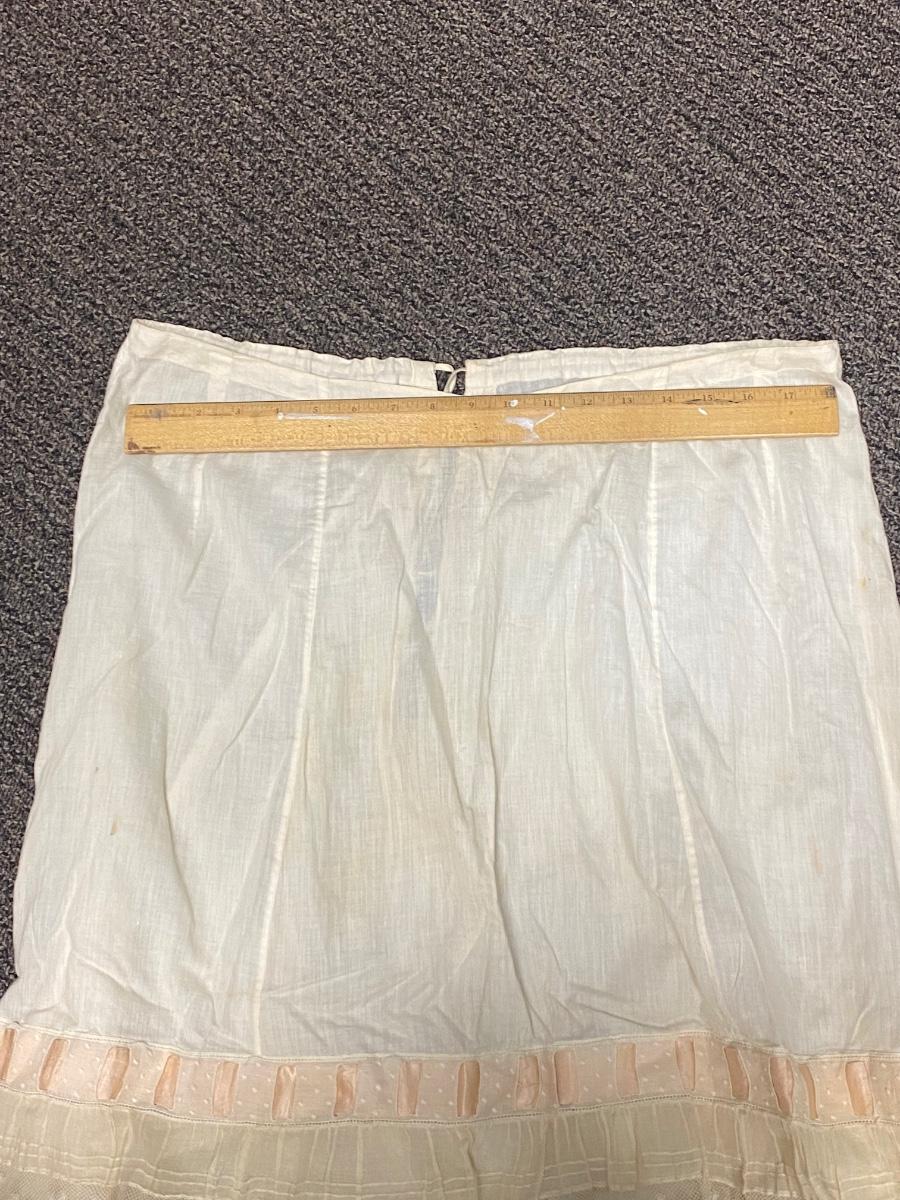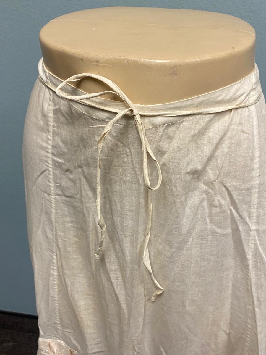Vintage Antique Victorian Drawstring Petticoat Cotton with Ruffled Lace