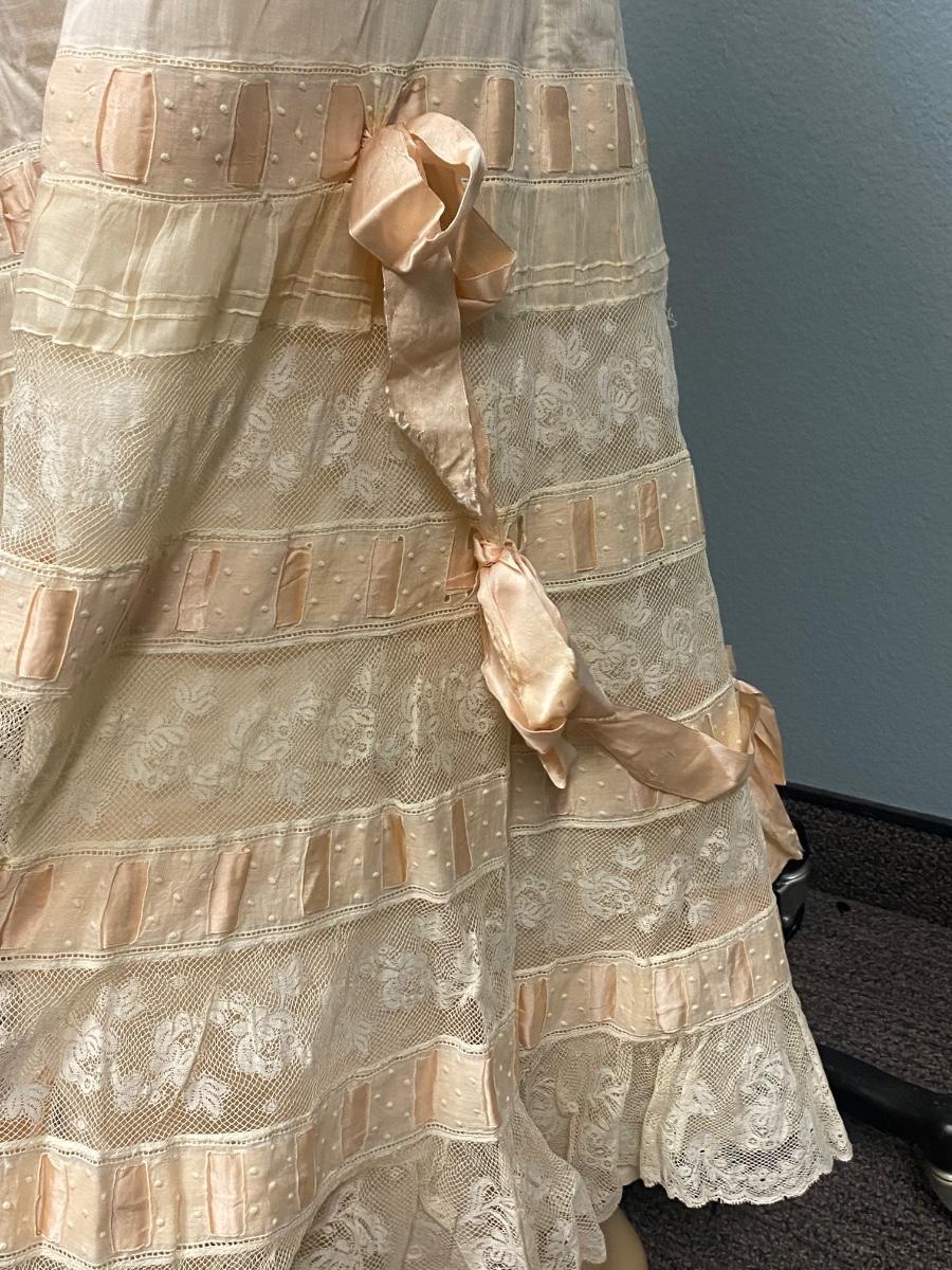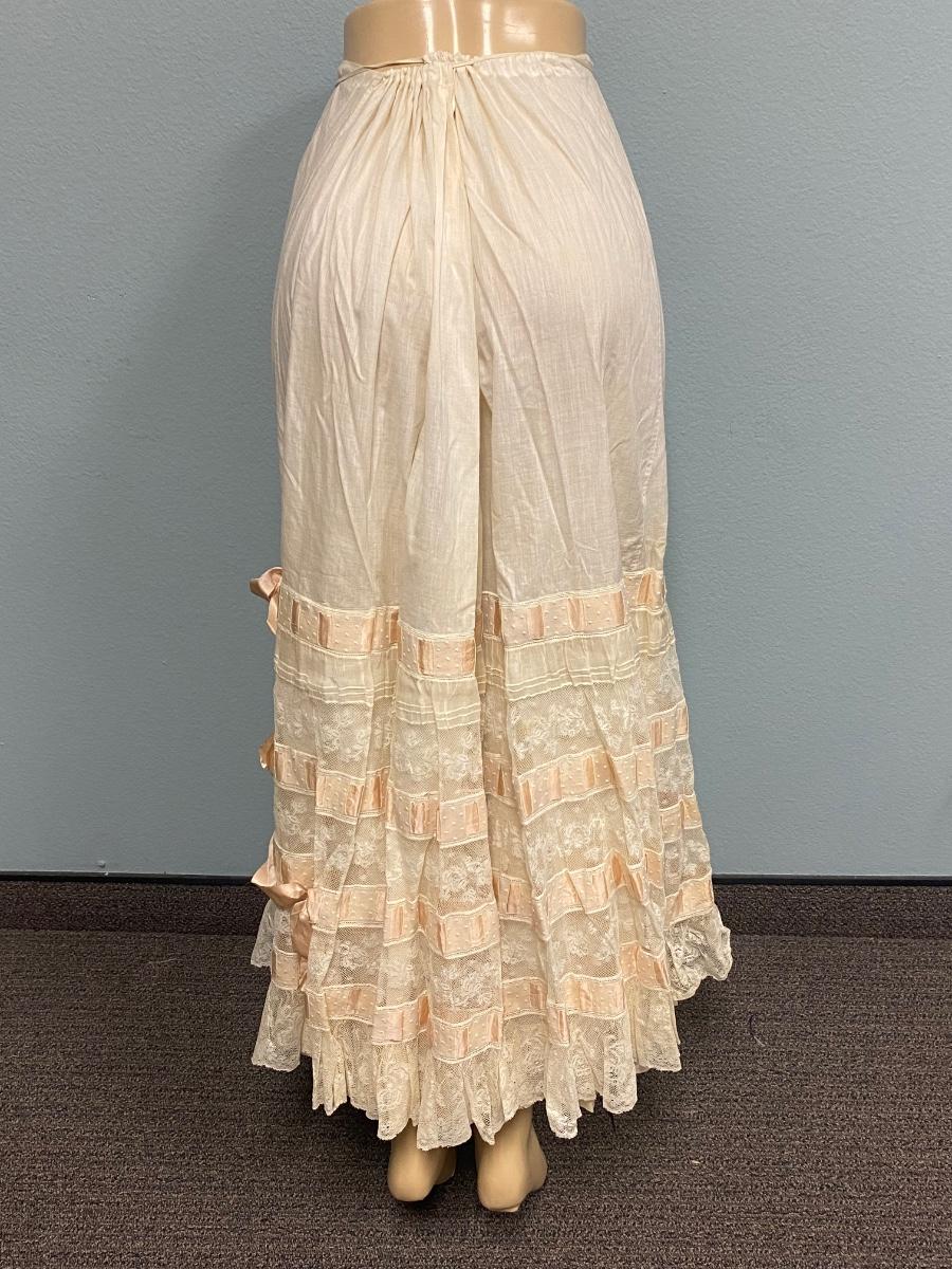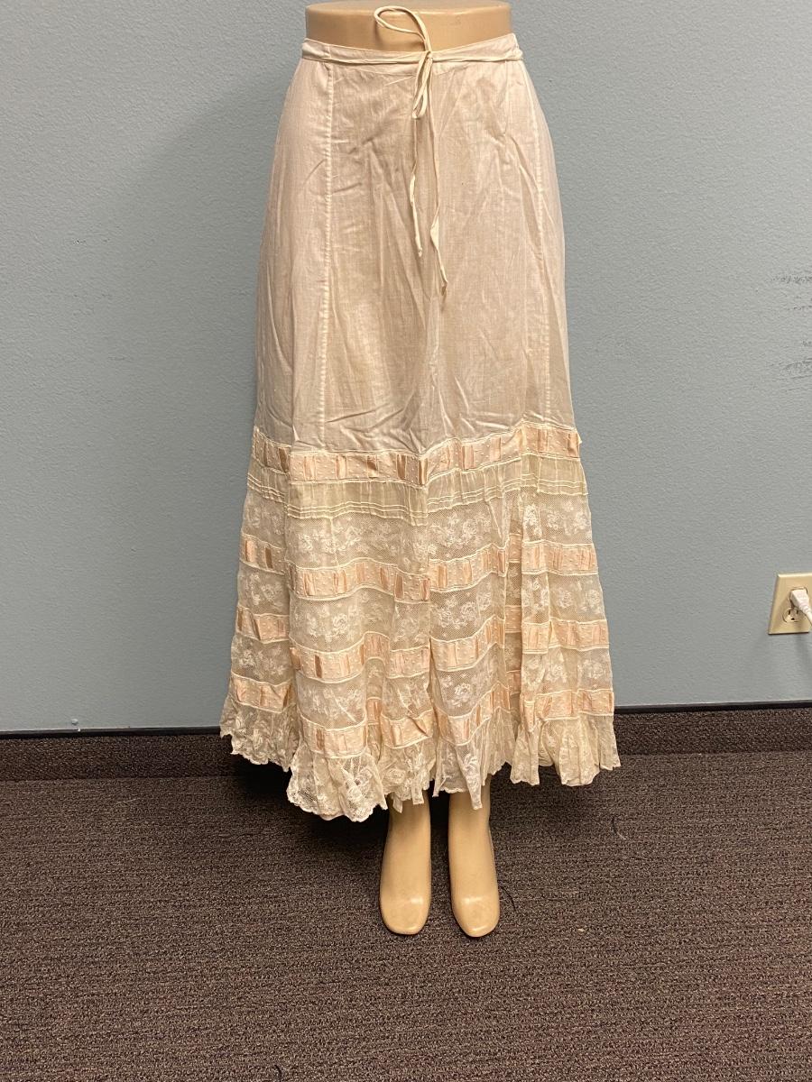 Vintage Antique Victorian Drawstring Petticoat Cotton with Ruffled Lace