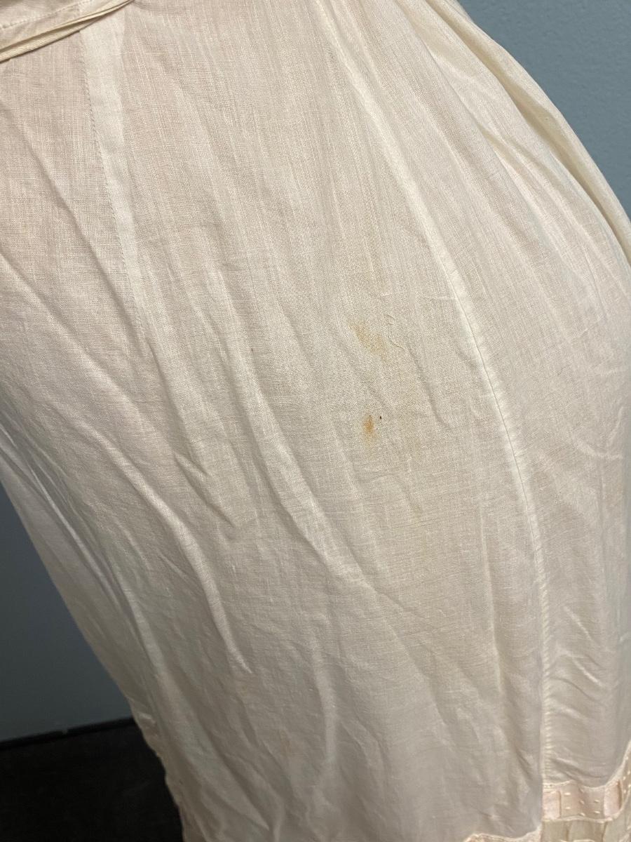 Vintage Antique Victorian Drawstring Petticoat Cotton with Ruffled Lace. In good antique condition. Drawstring waist gives size adjustment. Some light spots noticed.