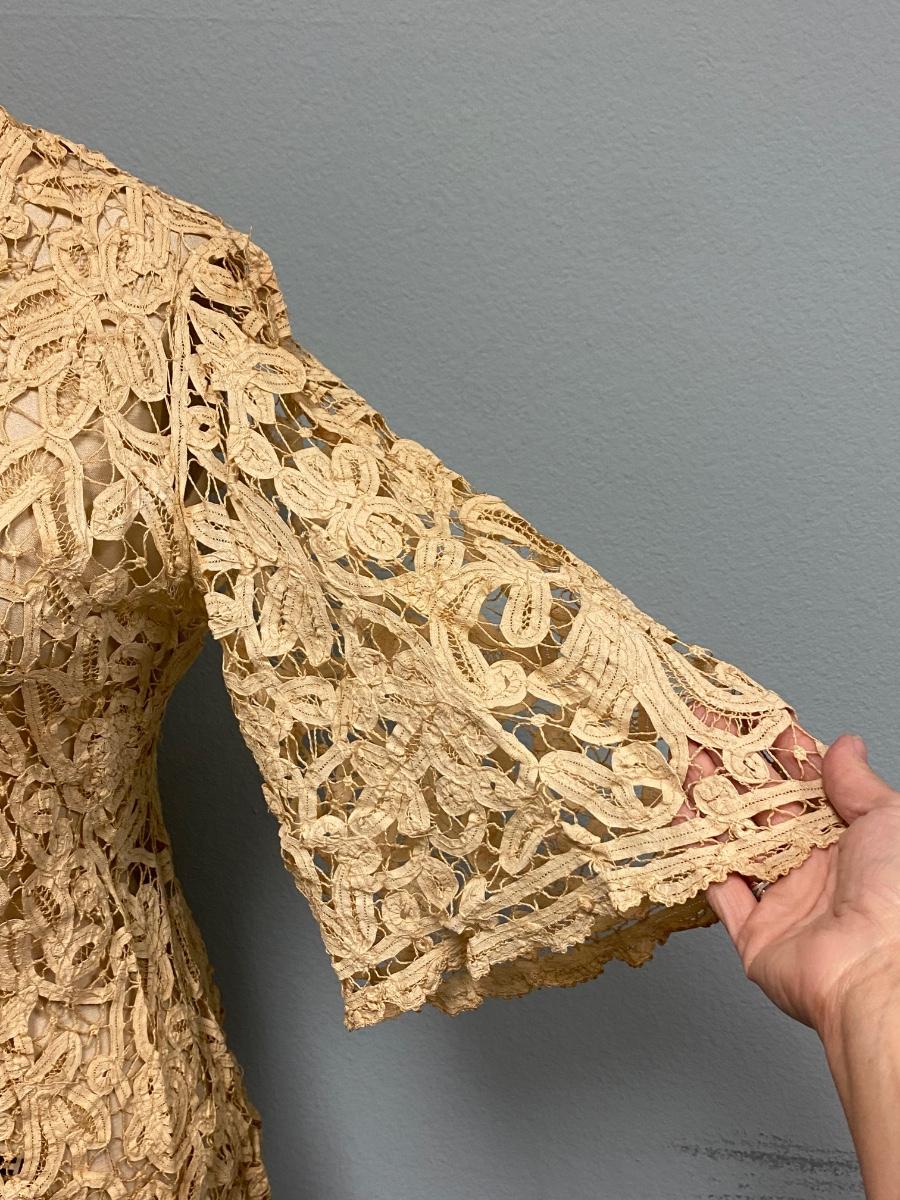 Antique Vintage Victorian Heavy Lace Blouse Cover Up Top. In good vintage condition. Heavy lace, a little discolored but it looks like it was more ecru than white to begin with. Snap closure at the chest. May have some holes in lace but nothing major. Size 8.