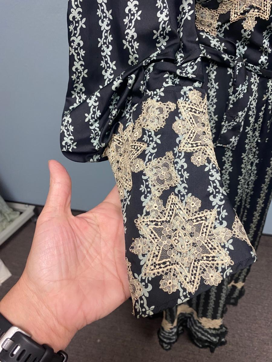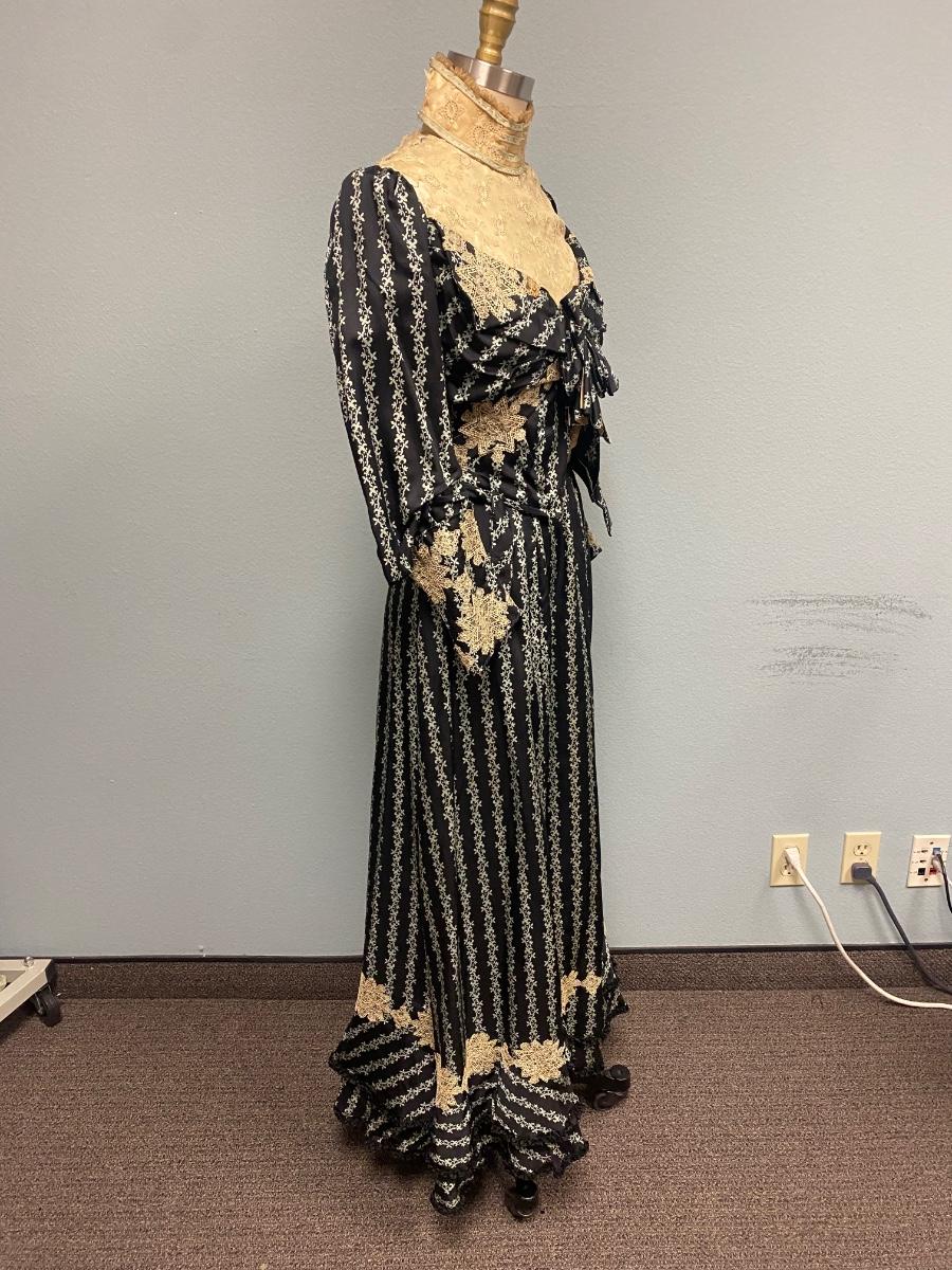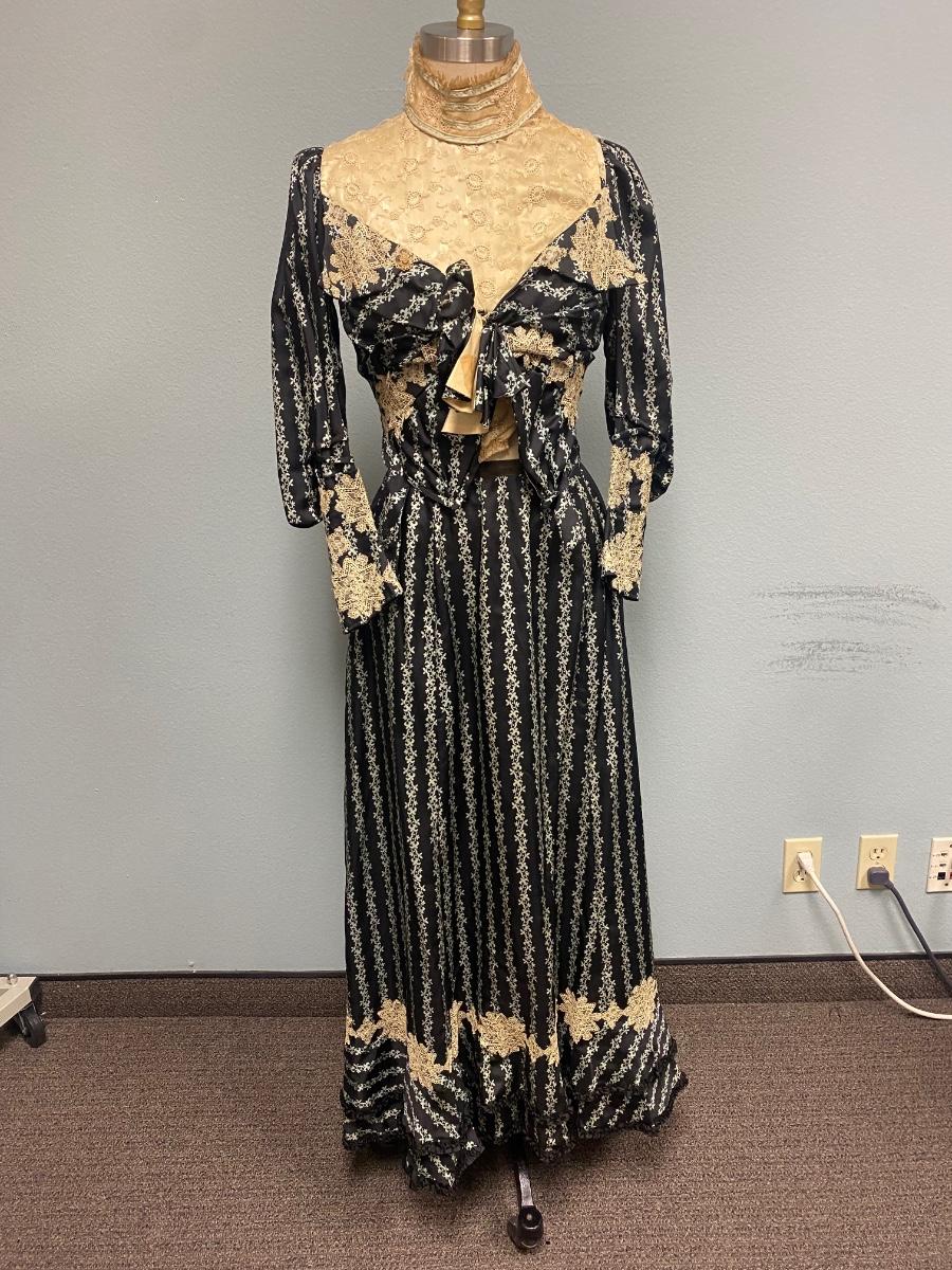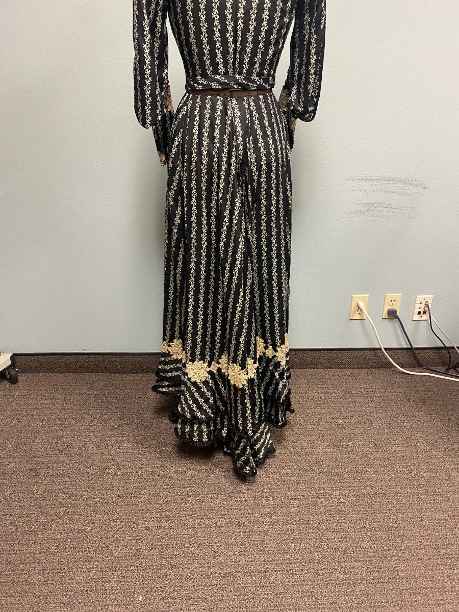 Antique Blue Floral Striped Ivory Lace Victorian Two-Piece Gala Opera Party Dress Bodice Skirt