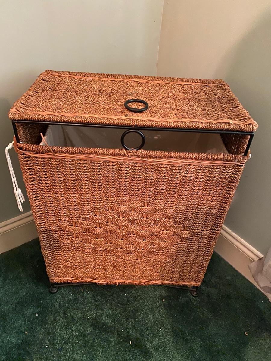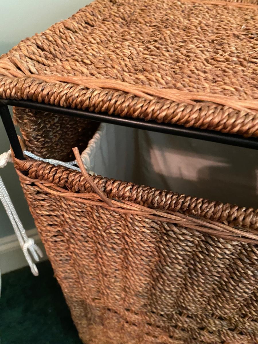 Clothes Hamper Basket Good Condition, Cloth Liner, 1 Unravelling Straw Piece See Photo 10.5x18.5x24.5