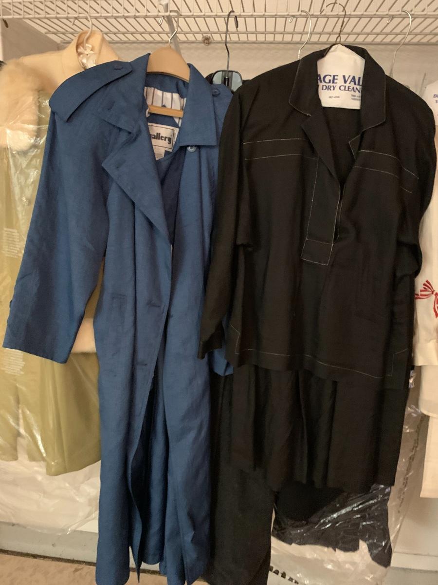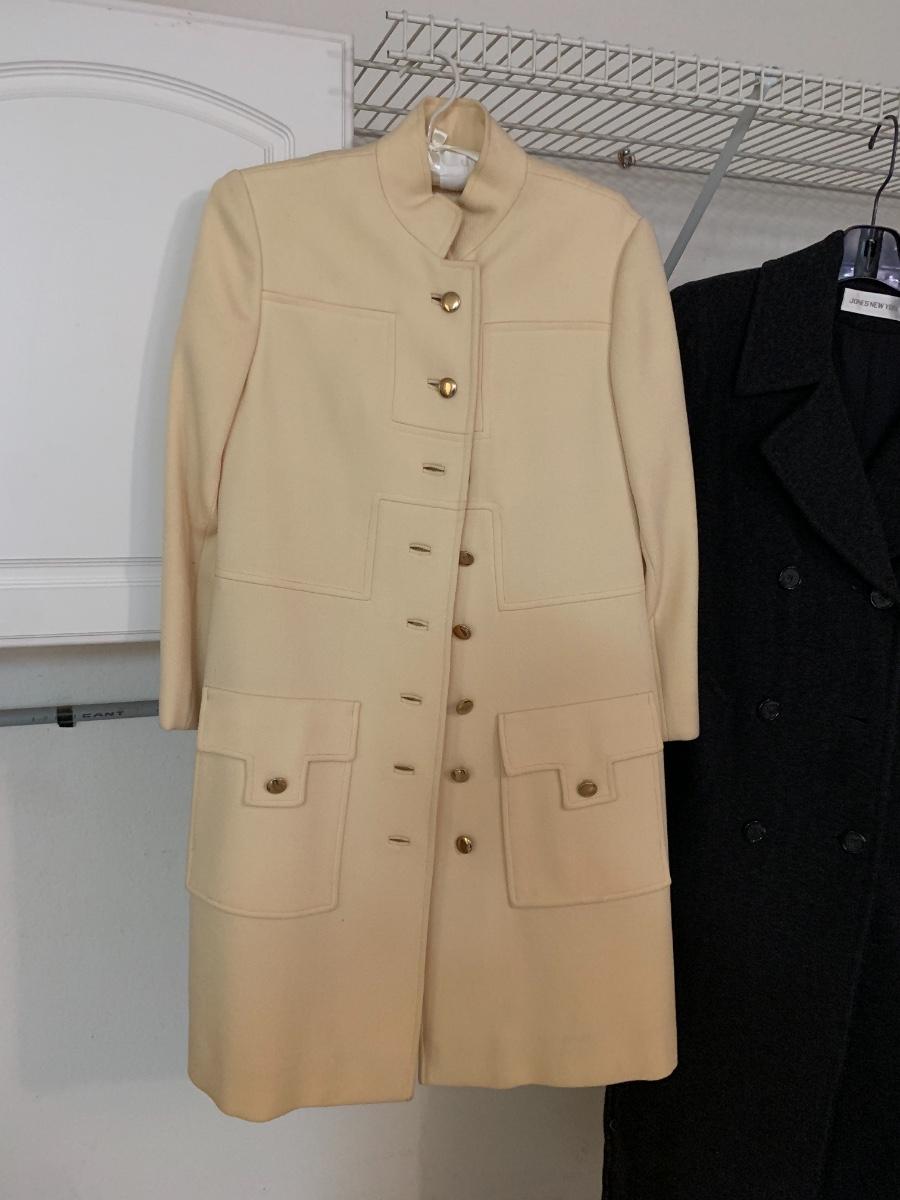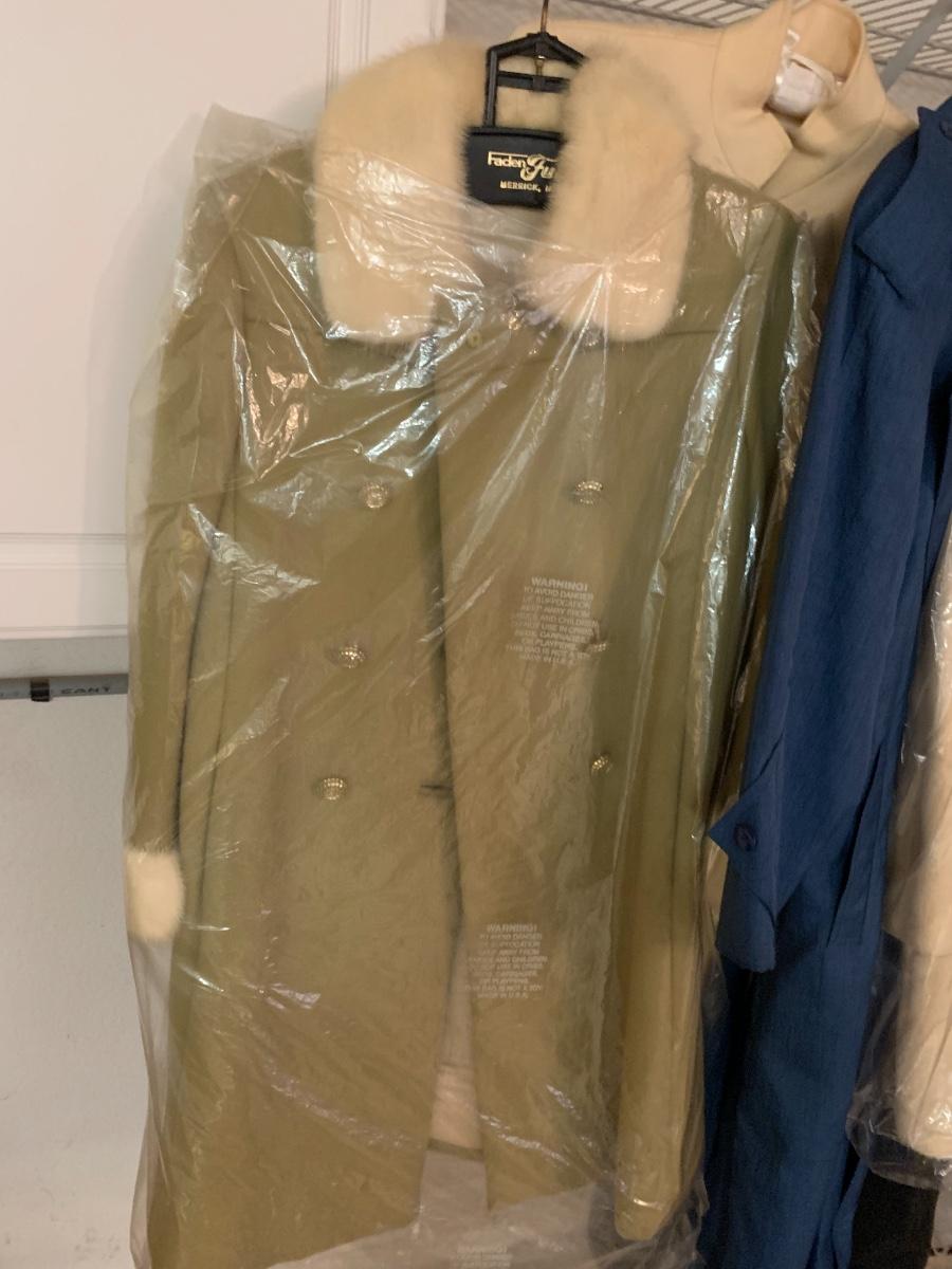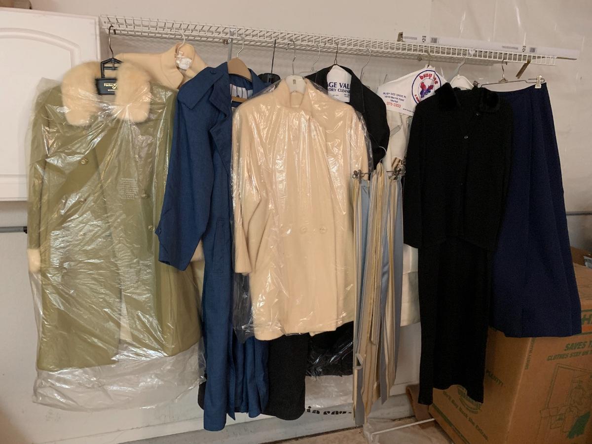 Lot full of vintage coats, 2 piece outfits and skirts. Good condition. Sizes small and petite. Heavy green coat with white fur trims.