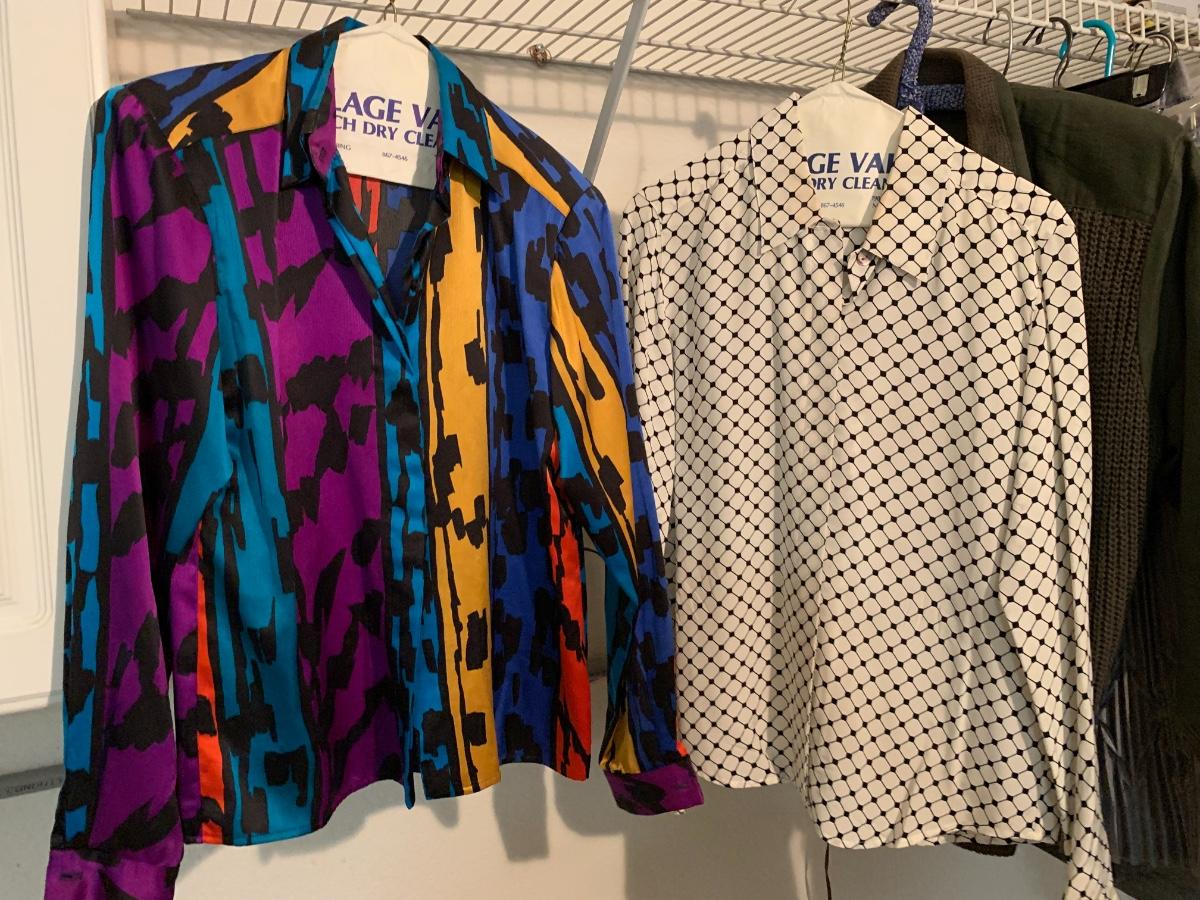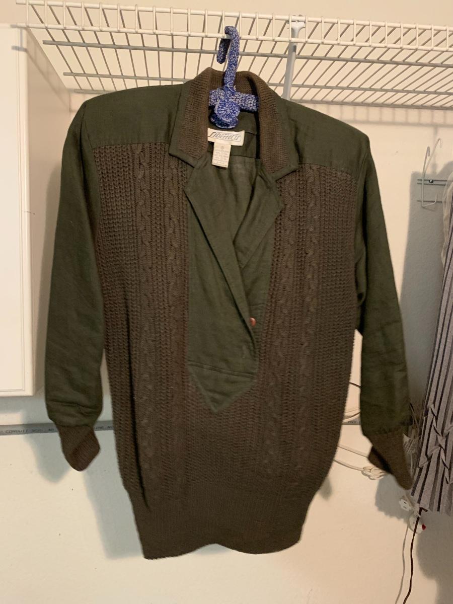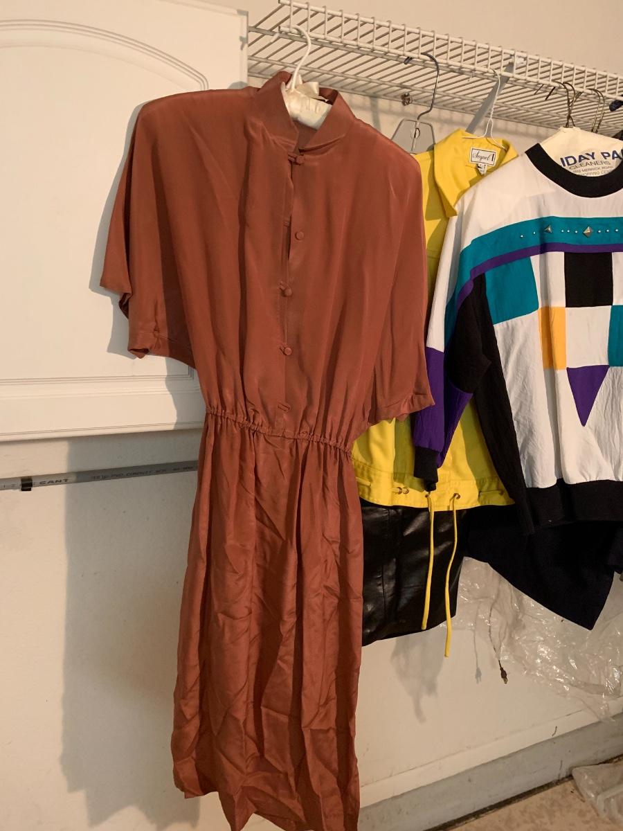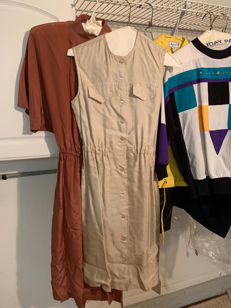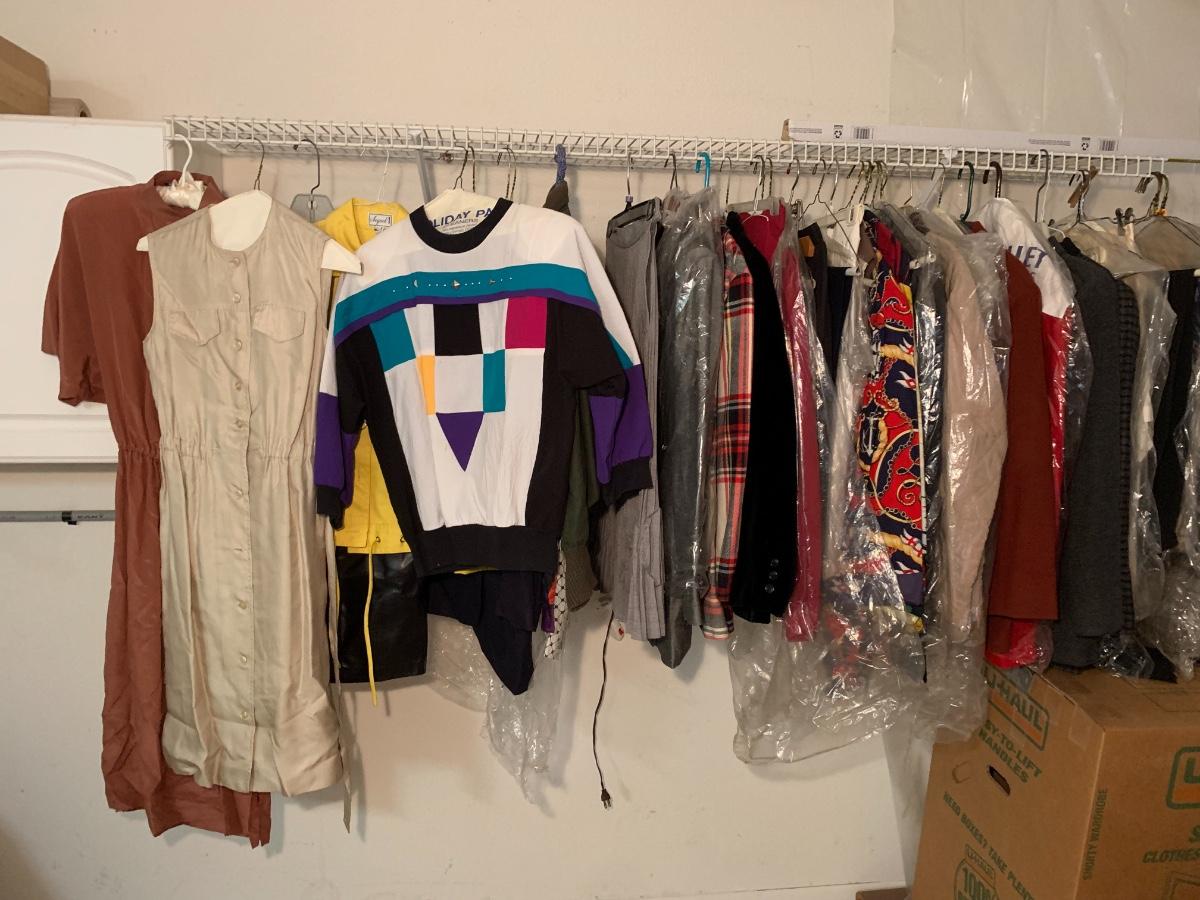 Includes dresses, tops bottoms, vests, skirts in woman’s sizes small. Vintage items including brands Carol Little, J&R Leather, Stirling Cooper, Ellen Tracy and more! Mostly good condition, some with light stains.