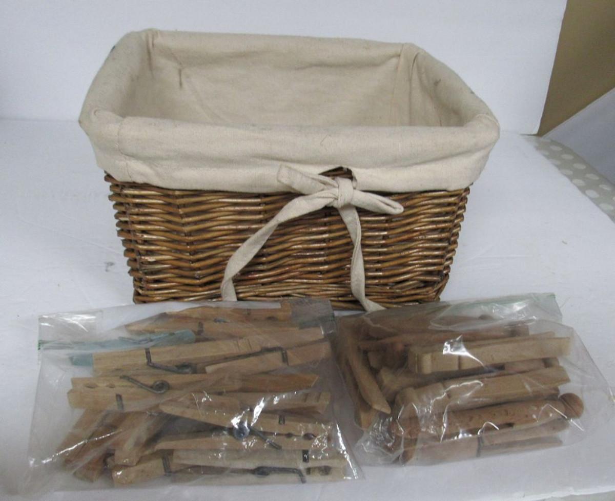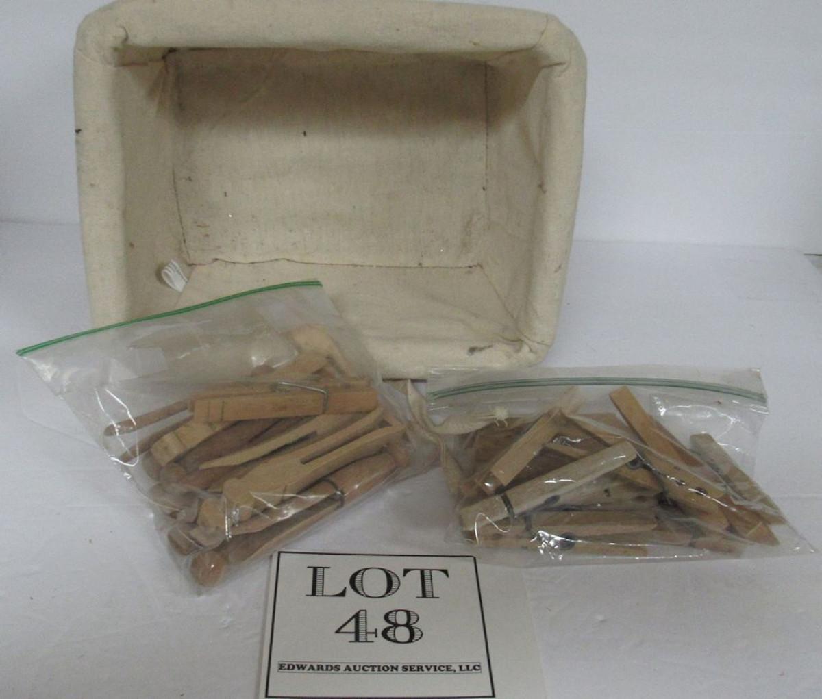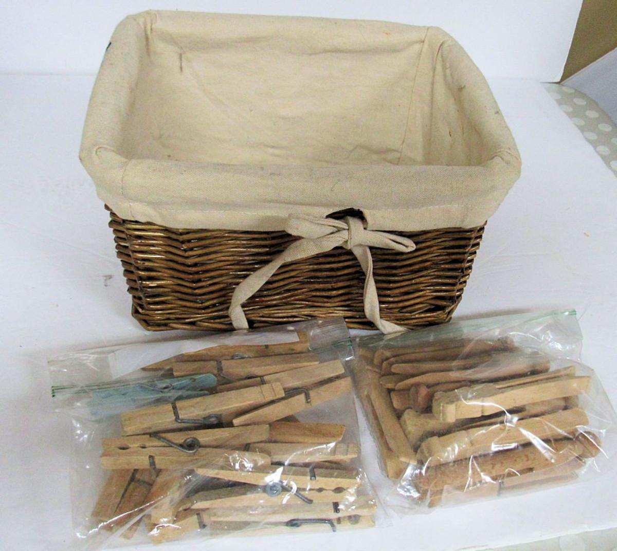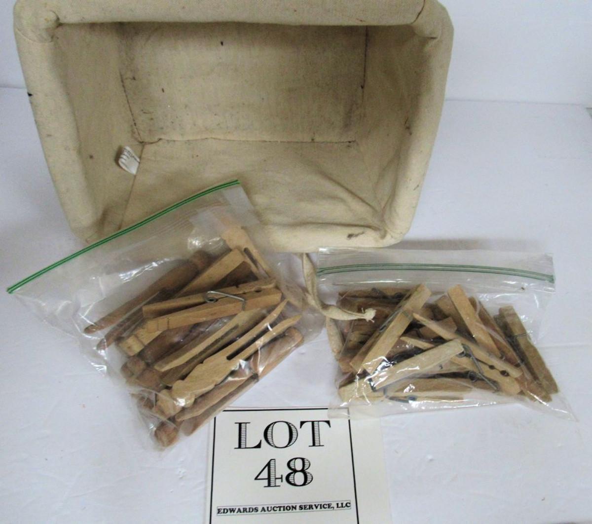 Clothes Pin Basket and 2 Bags Wood Clothespins