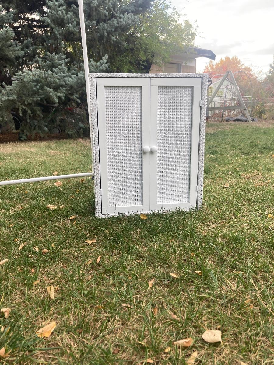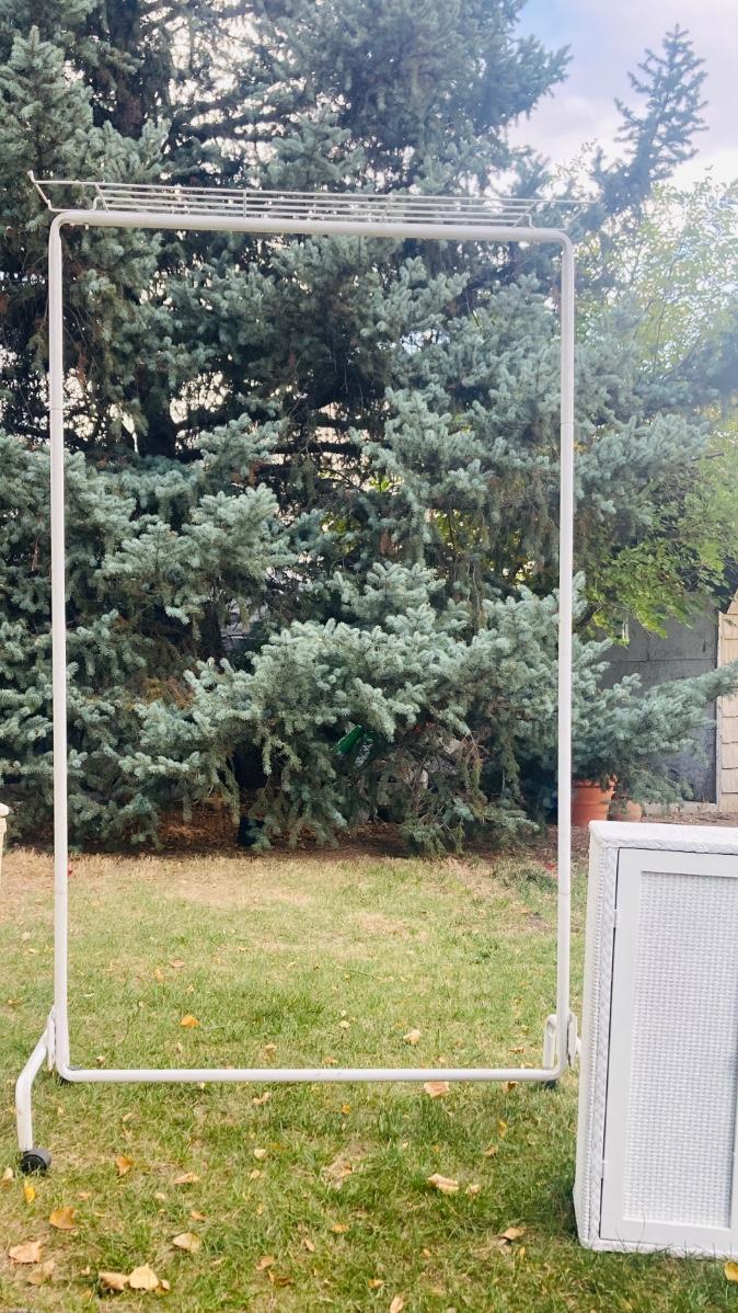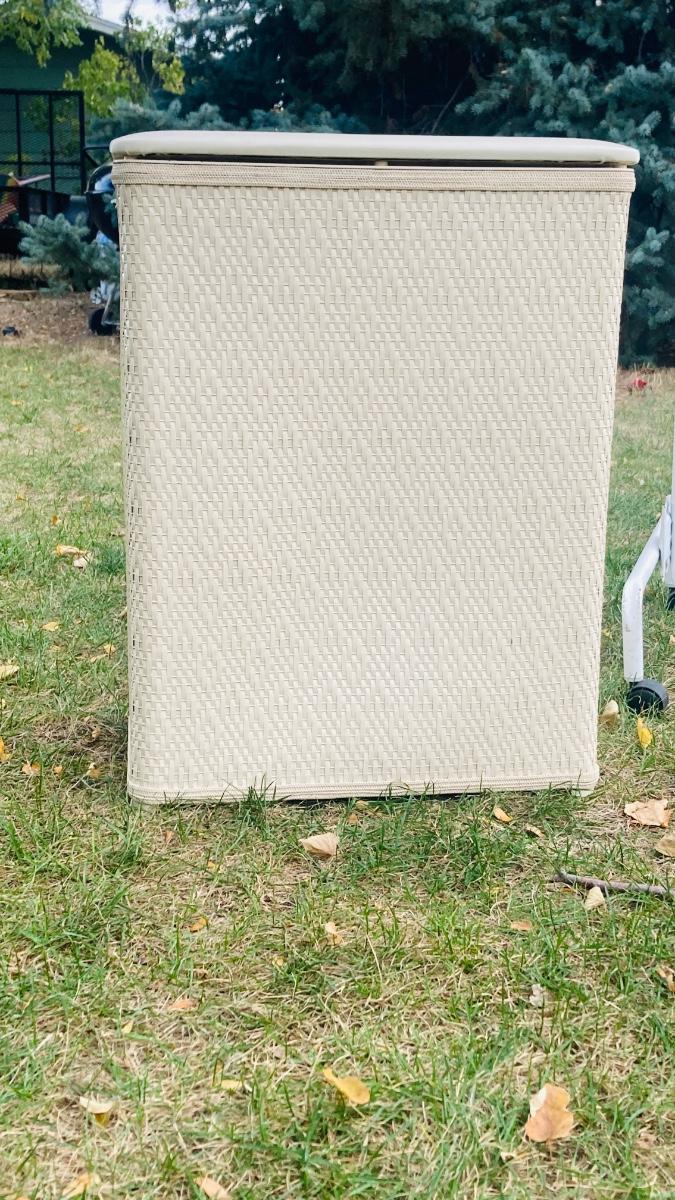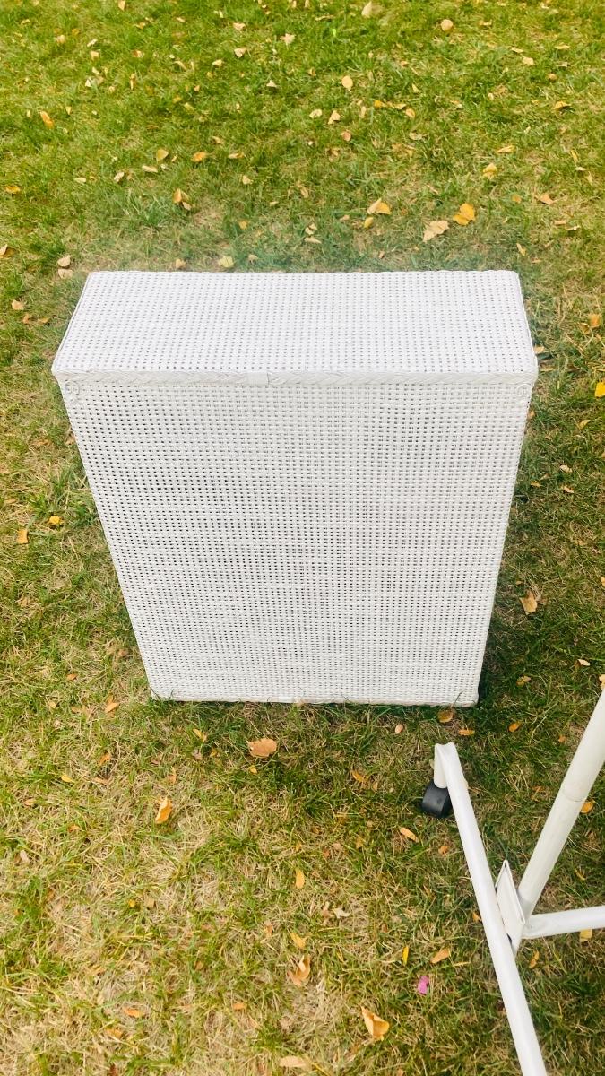 GARMENT RACK, LAUNDRY HAMPER, AND LITTLE WHITE CABINET