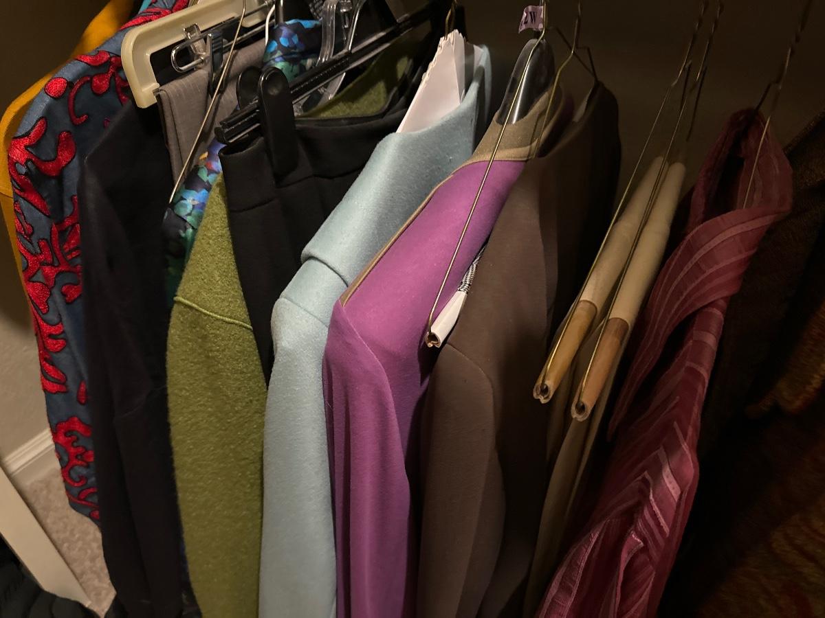 There is a large selection of beautiful clothing in this Online sale. You are bidding on all items in the photo unless stated otherwise. Purchases are charged at the close of the auction. shipping, when available, is only to addresses entered in estatesales.org account profile. Purchase excludes any displays and items used for sizing. We do not have time to measure individual items. Measurements and colors included in photo are estimations based on our software. All Sales Final. Check messages and email on estatesales.org for updates on pickup. For questions call or text us directly. Thank you for bidding.