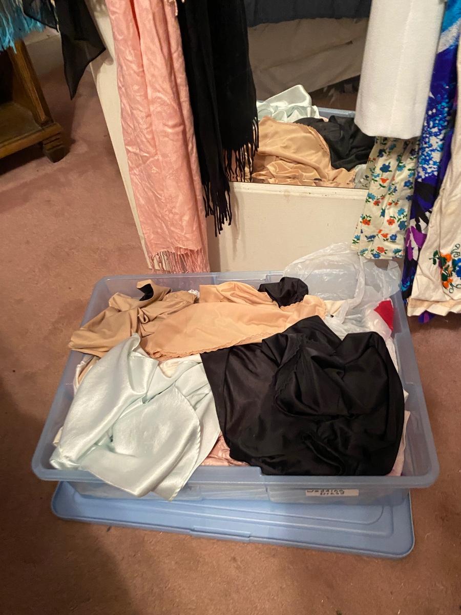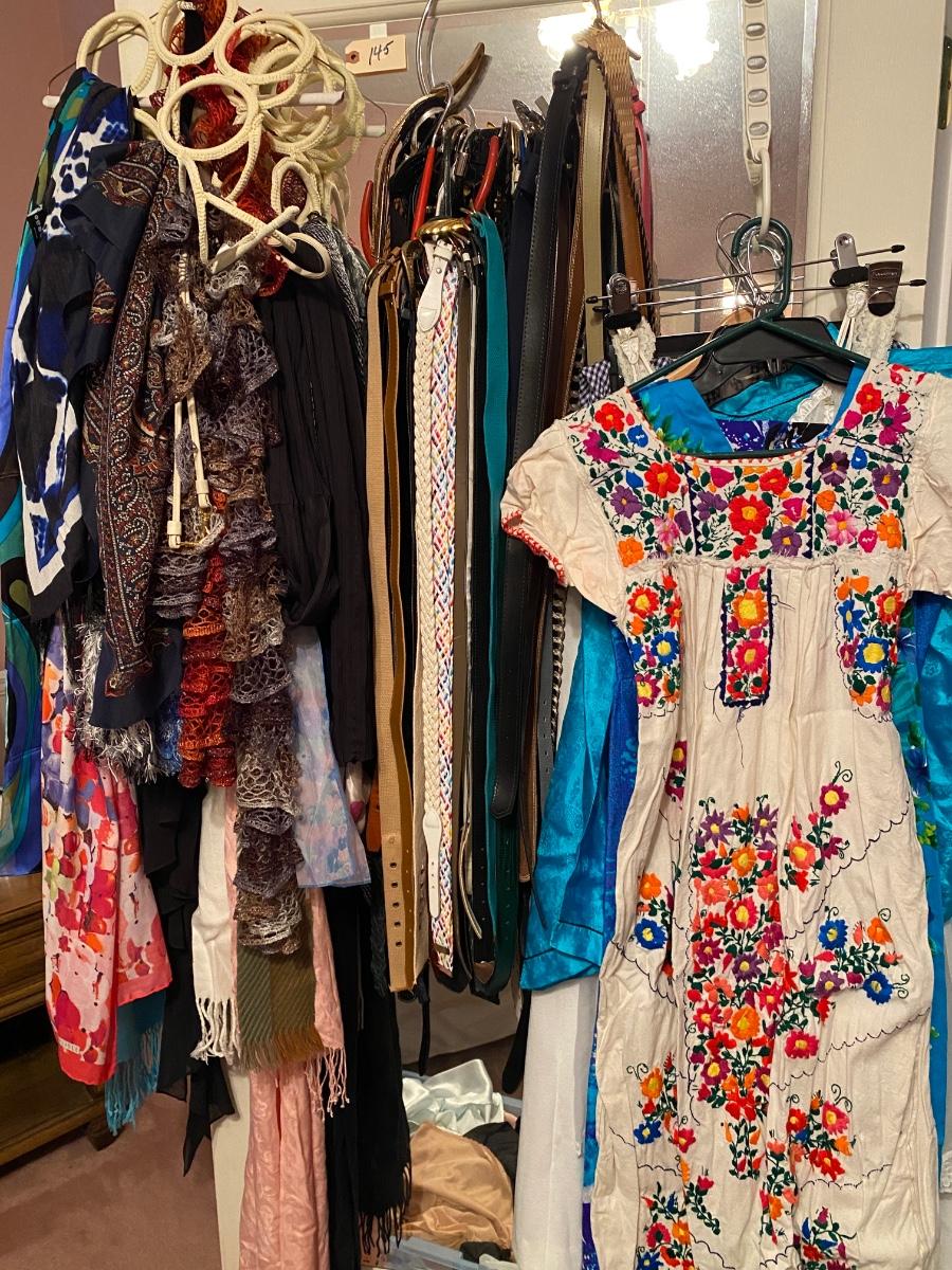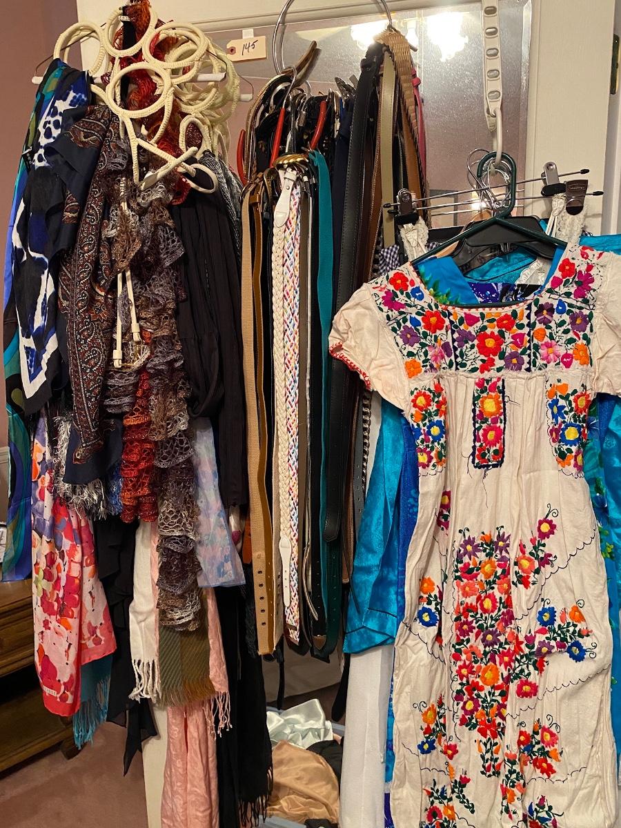 Misc Belts, Scarves, Vintage Hawaiian Dresses, and Ladies Slips As Pictured