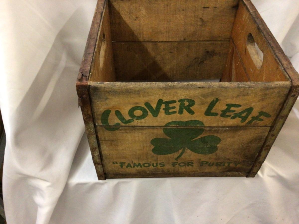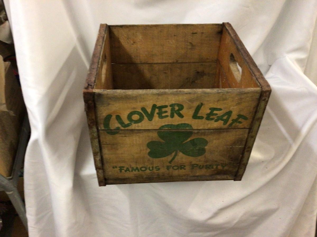 Nice Clover Leaf wood create with handles. It has Famous For Purity on the other side. Very nice somewhat rare.