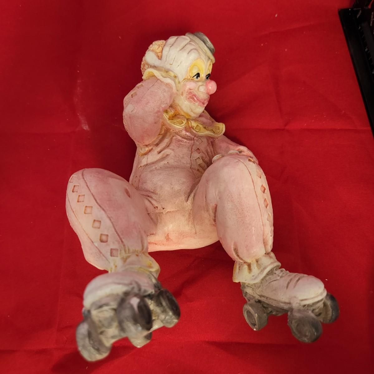 Clown in roller skates sculpture.