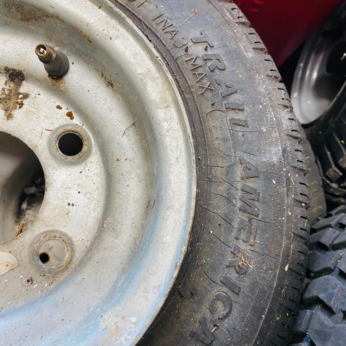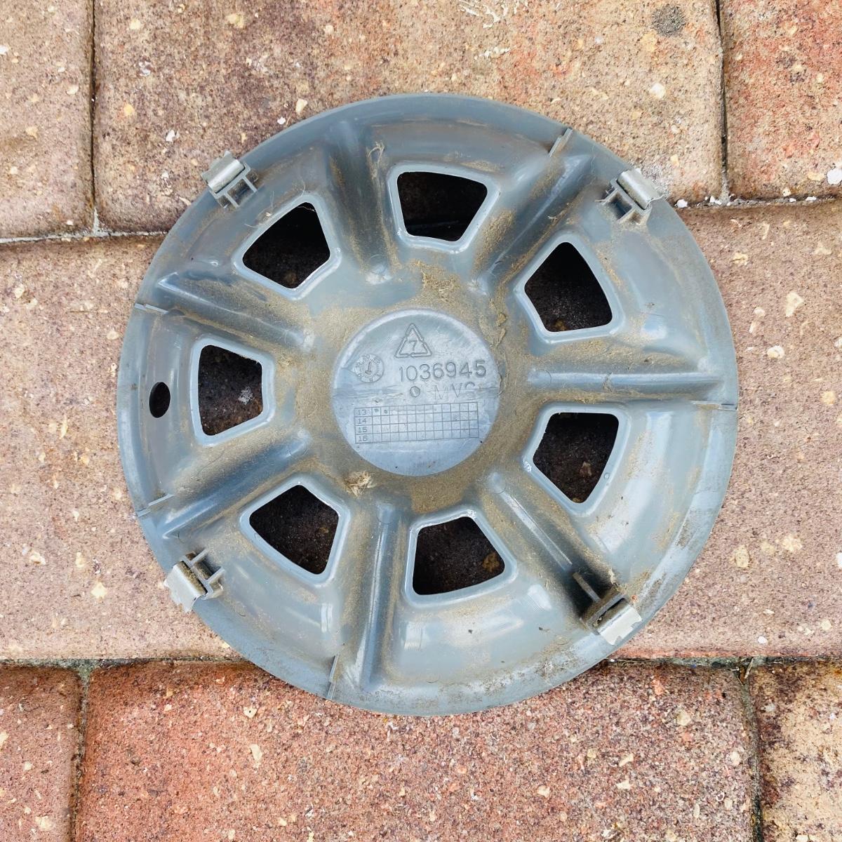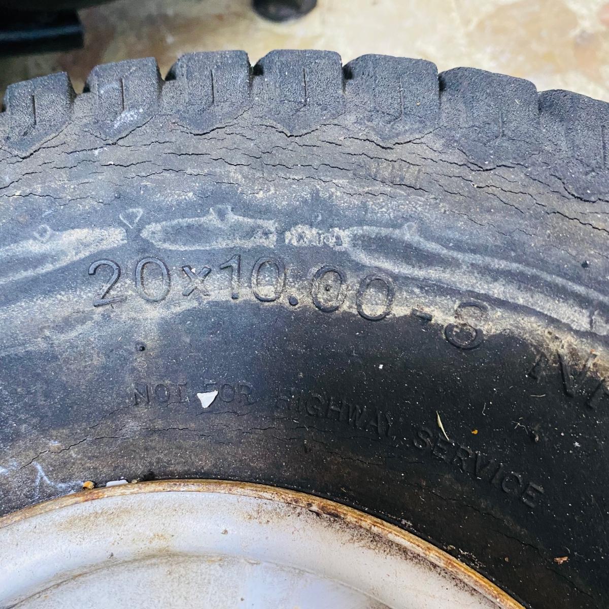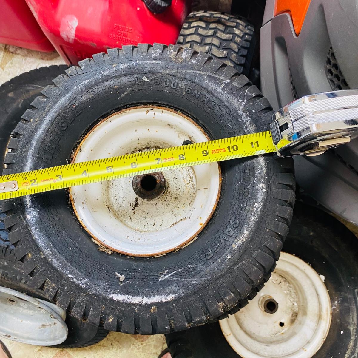 Six hubcaps for Club Car Golf Cart.. Measures 8.25”D. Also includes six various sized used tires.