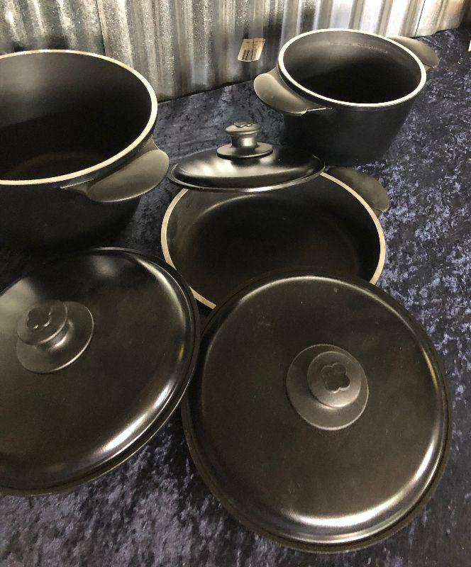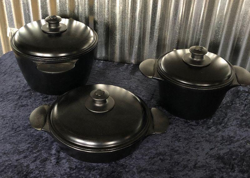 Lightest use on this set of three pieces of Club cast iron cookware..with lids...