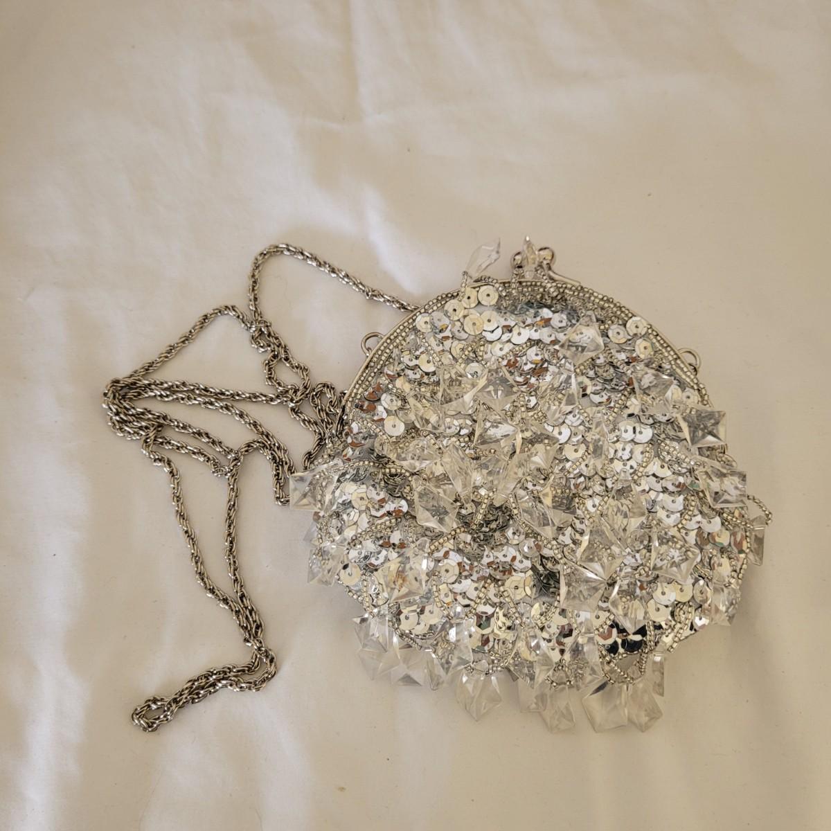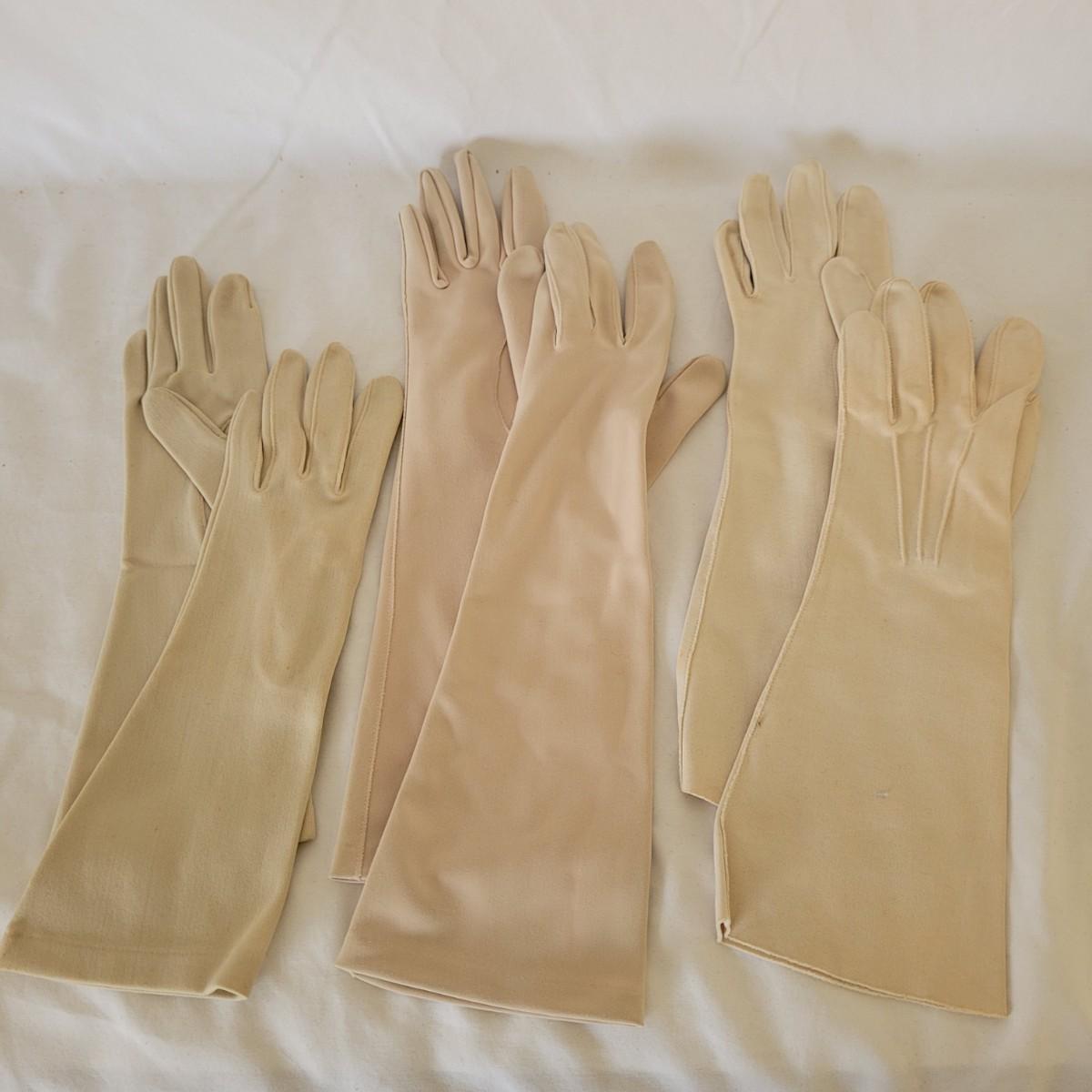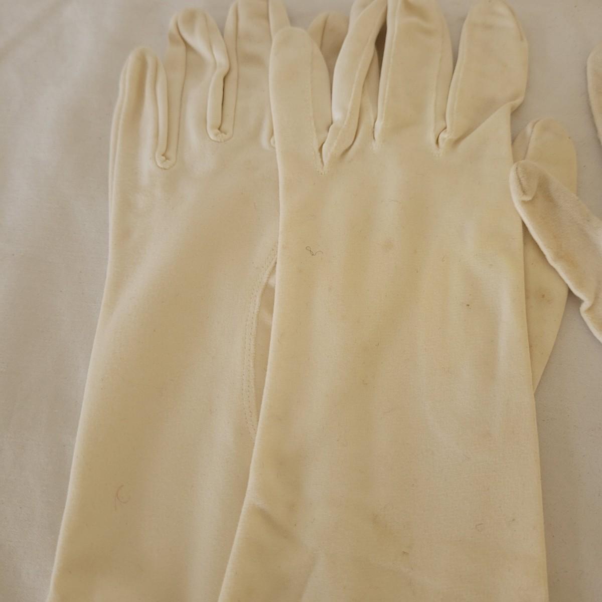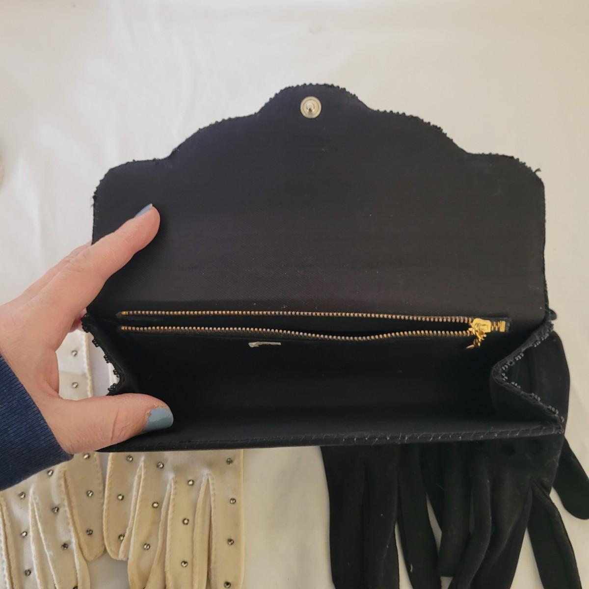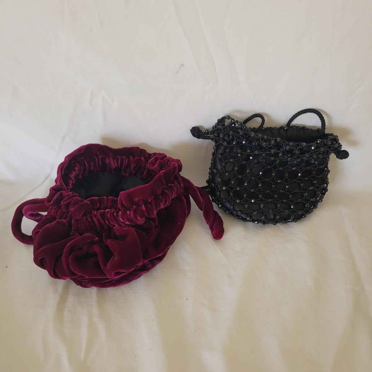 This collection of fashion accessories includes beaded clutches, a small brown faux leather handbag, a variety of fashion gloves and a vintage pillbox style hat. Some gloves have heavier staining (see photos). Brown handbag measures approximately 9” x 7.” Shipping available.