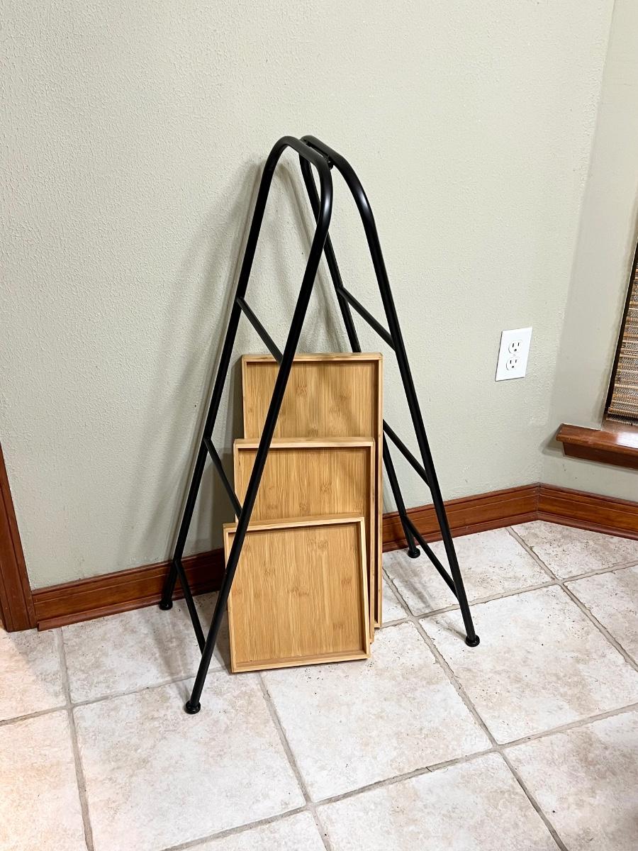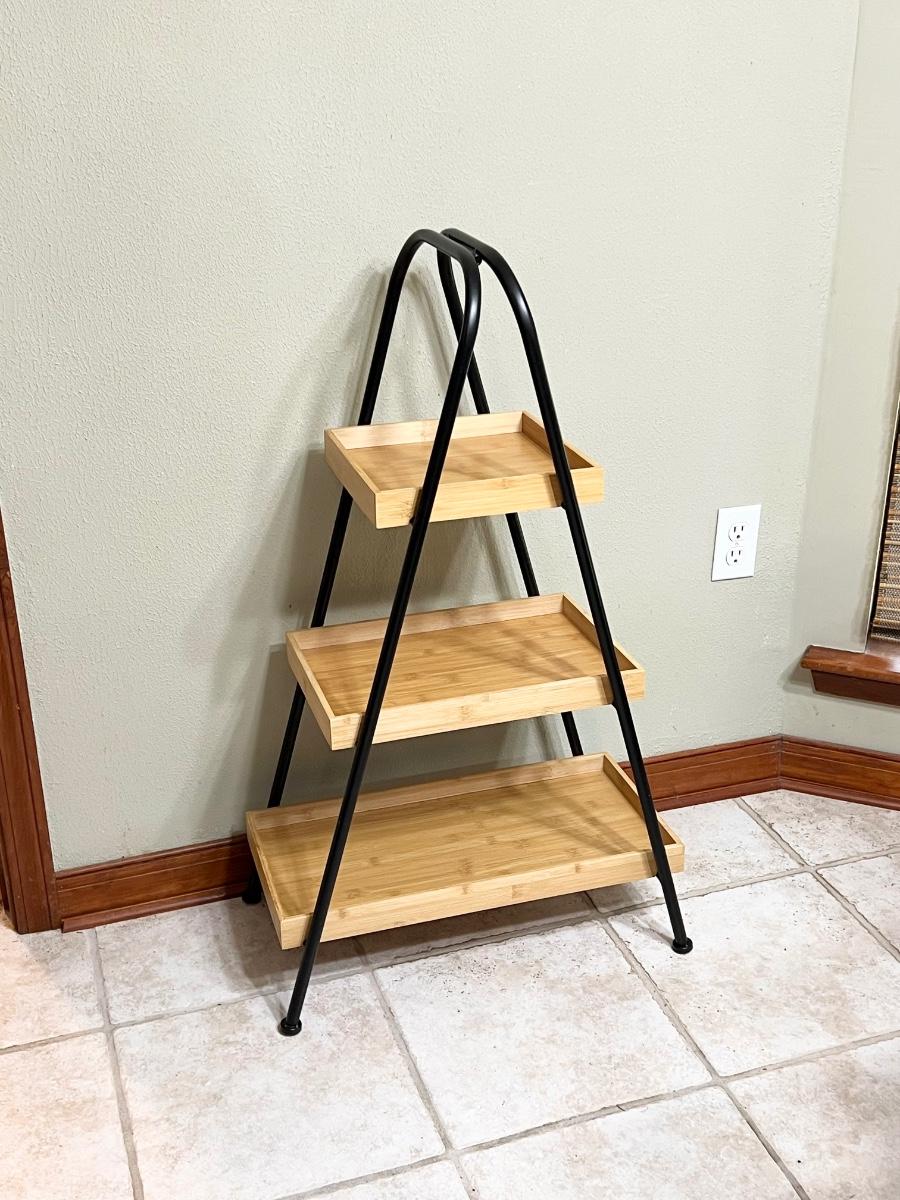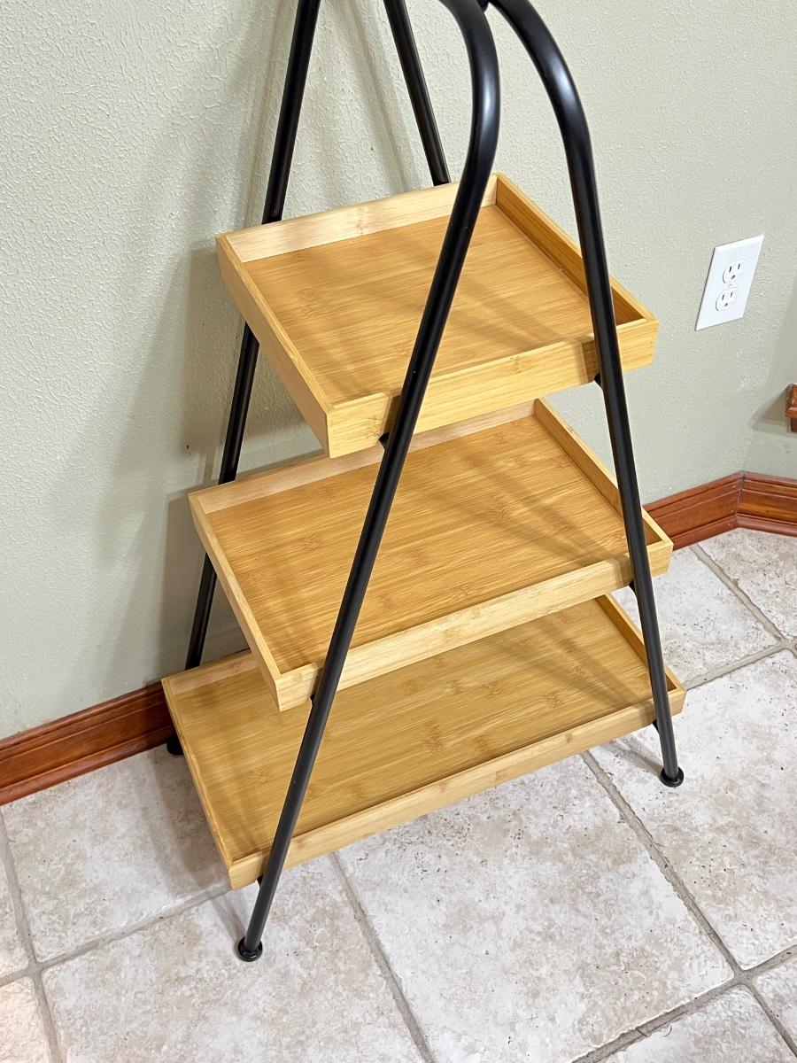Foldable 3-Tierd Metal Stand With Bamboo Trays