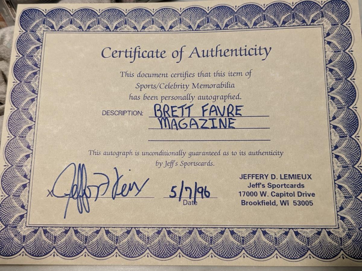 COA Brett Favre Autographed Sports Illustrated Magazine Cover 1996