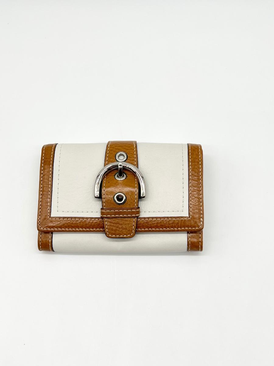 Includes purse with matching wallet ~ Bottom of purse does have minor stain & wallet has minor wear, see photos for condition ~ Purse = 8” H x 13” W x 3” D ~ Wallet = 5.5” H x 4” W ~ From top of purse to middle of strap = 9" ~ Purse ID# K0678-F10192