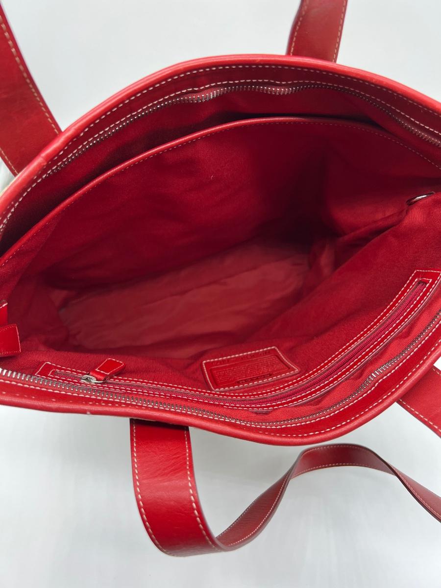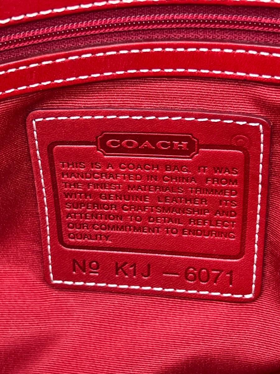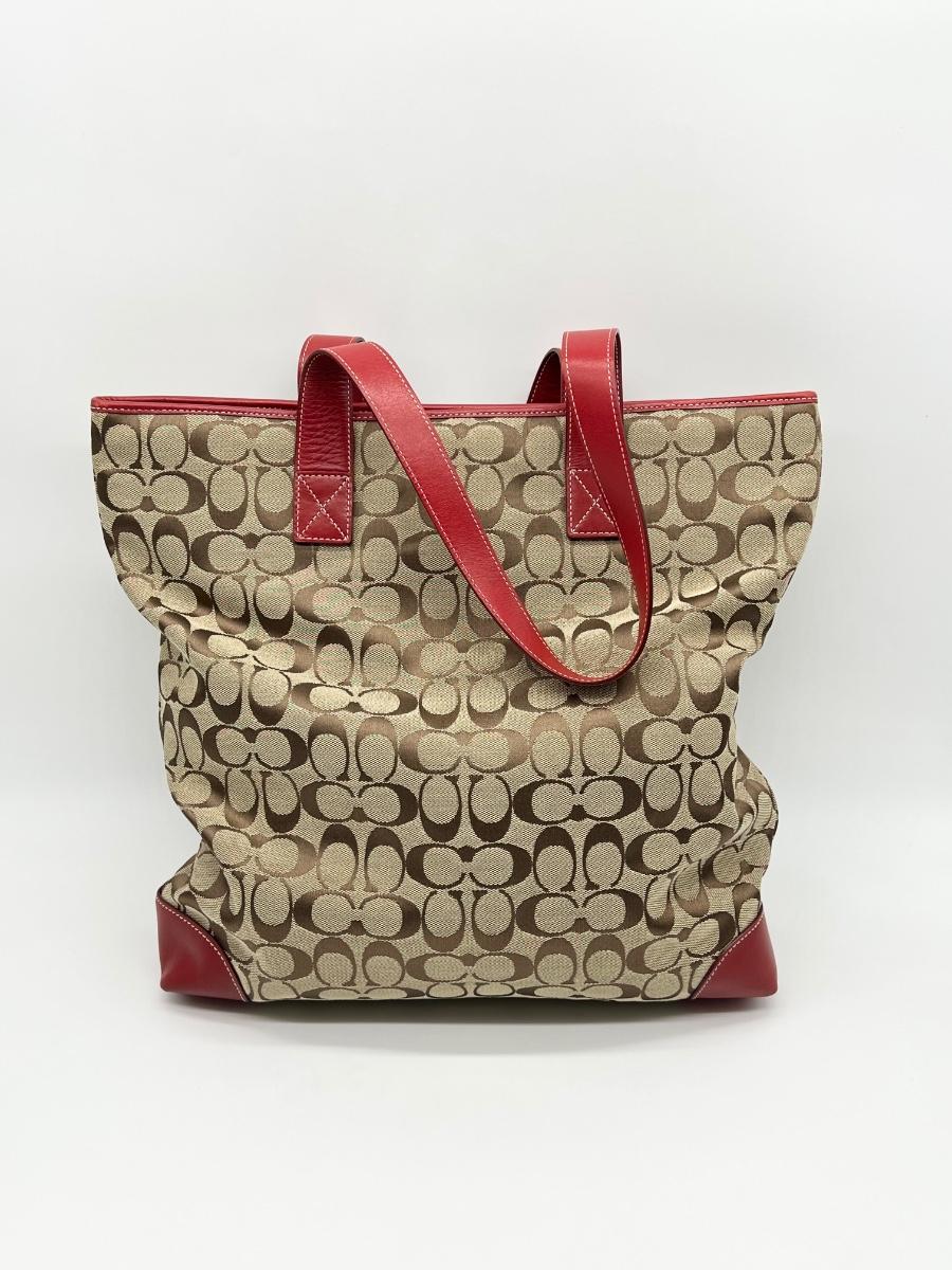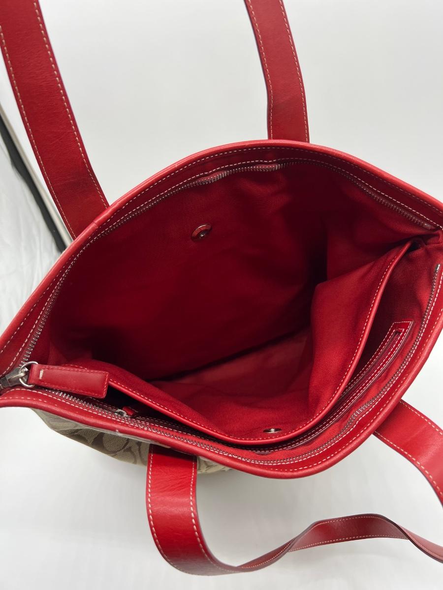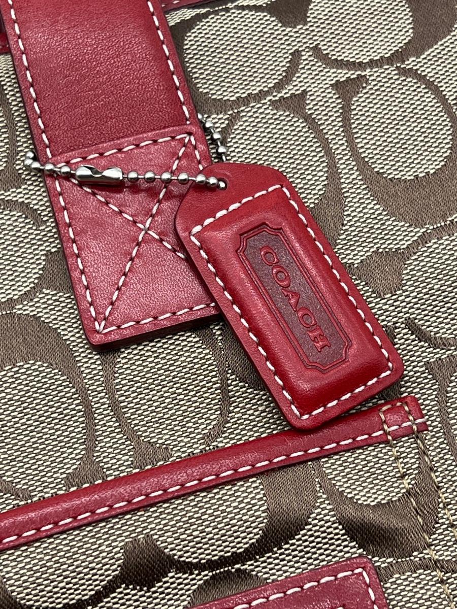 COACH ~ Khaki Shoulder Bag With Red Leather Trim