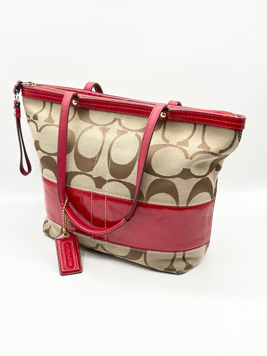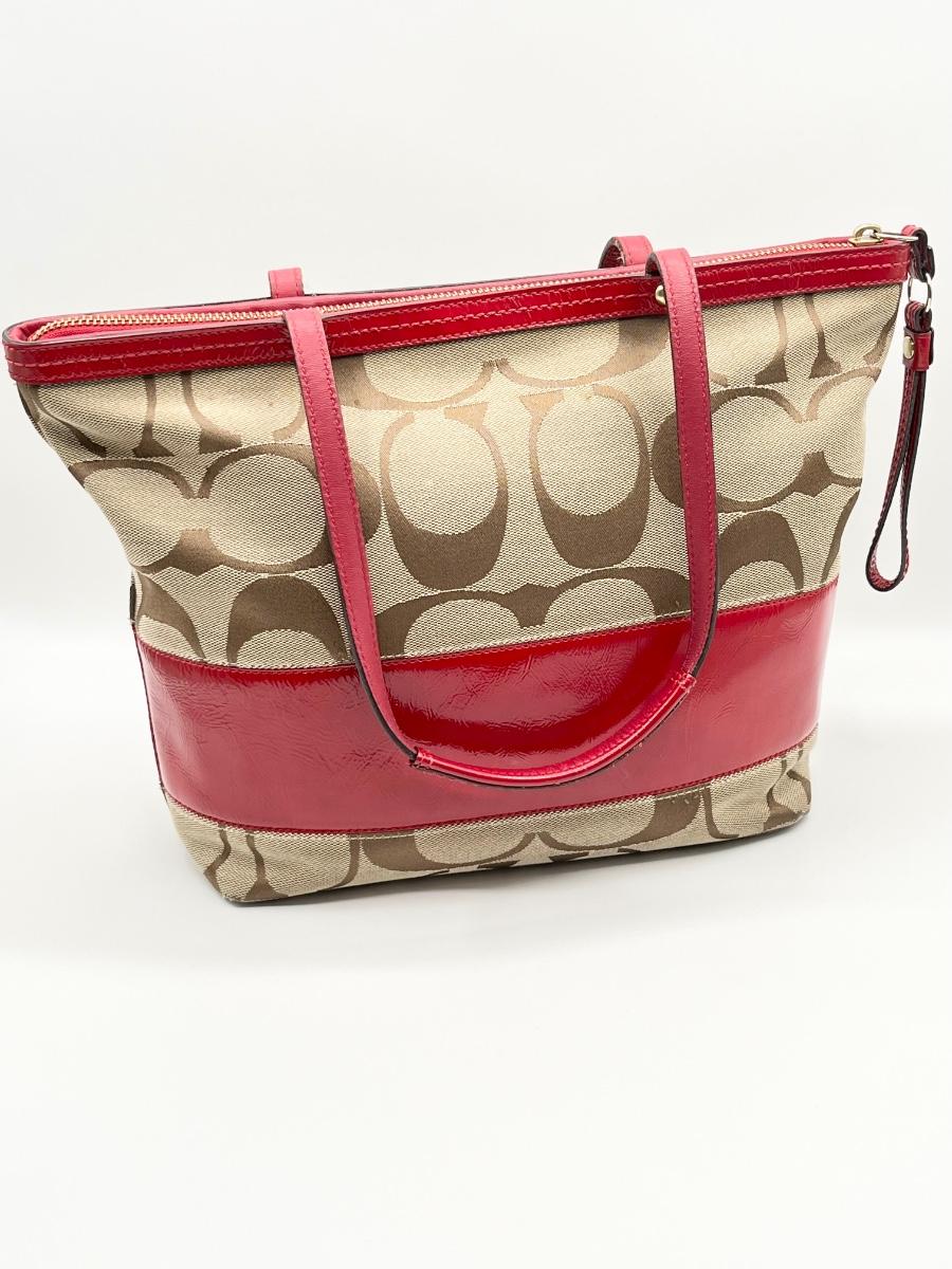 COACH ~ Beige & Red Leather Tote ~ Authentic