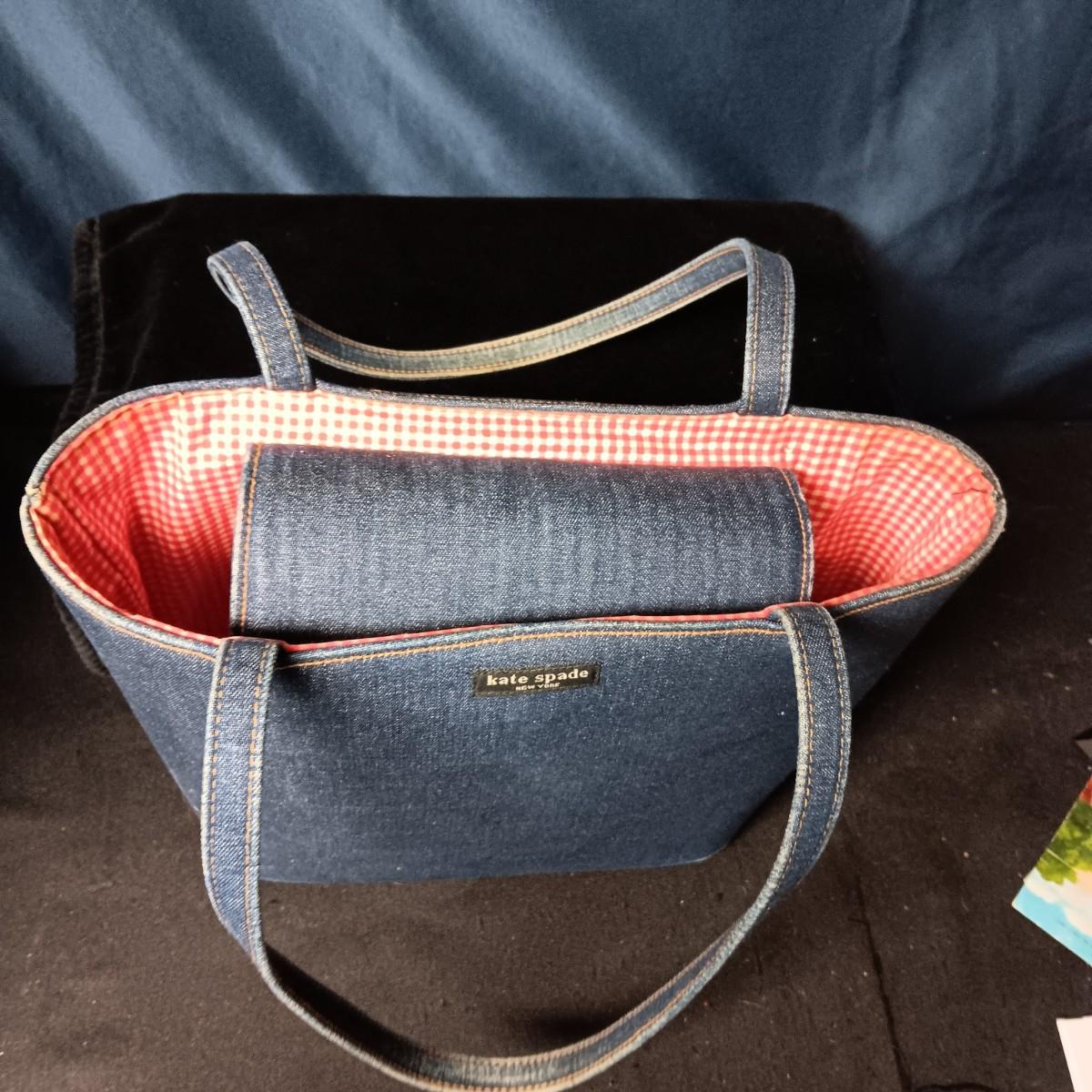 COACH BROWN LEATHER PURSE AND A KATE SPADE DENIM PURSE