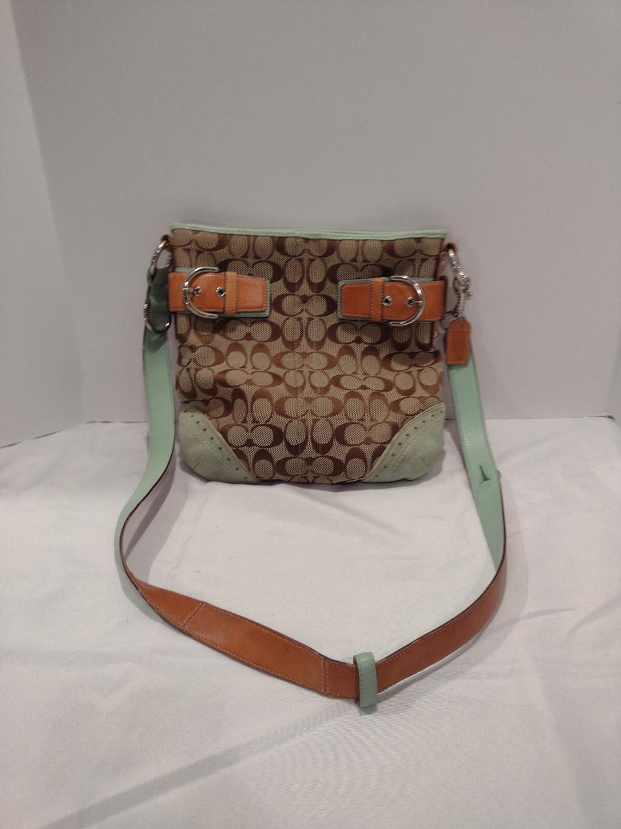 Coach Canvas and Leather Shoulder Bag. Item is in used condition and has signs of wear- please see all pictures for condition.