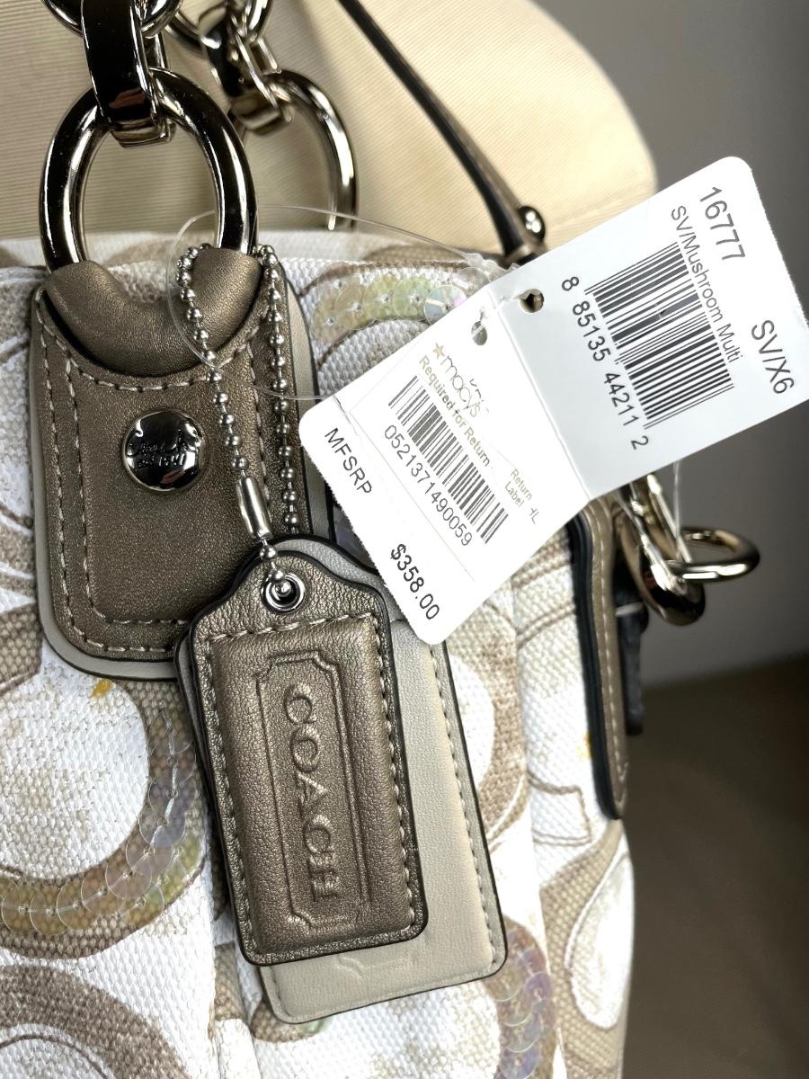 New with tags! In mushroom color Signature C logo with sequins. Has dust cover and removable crossbody strap. Excellent condition.