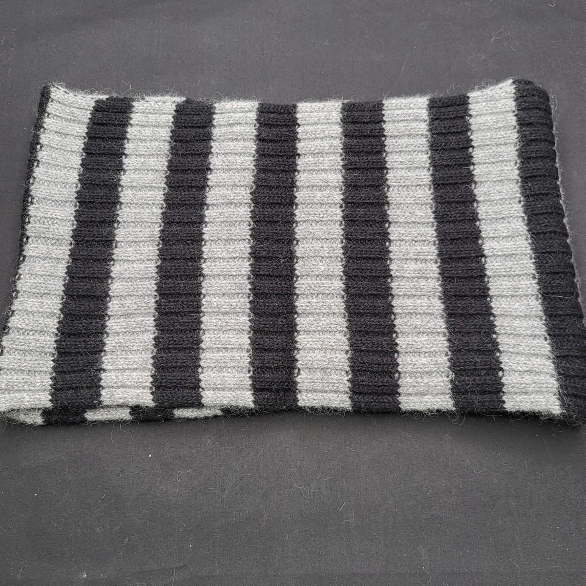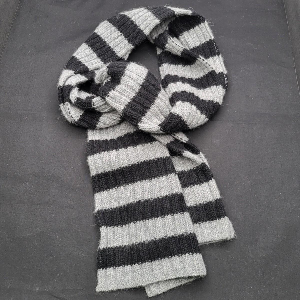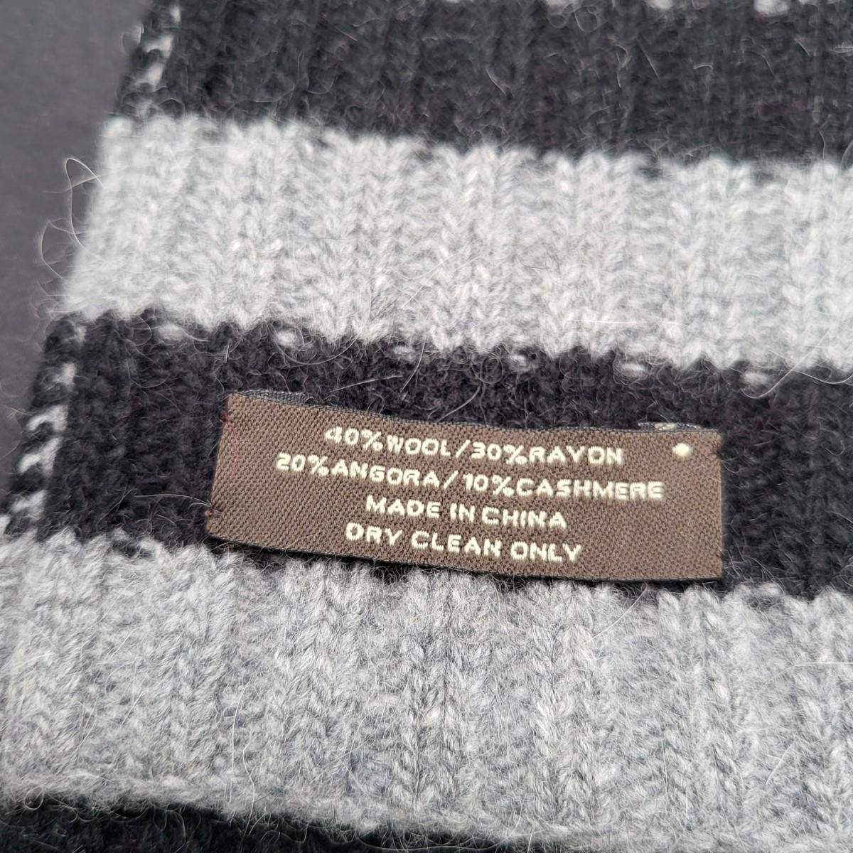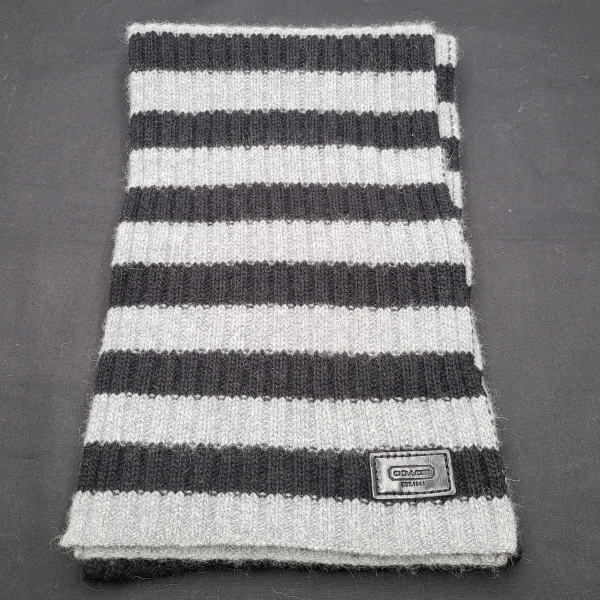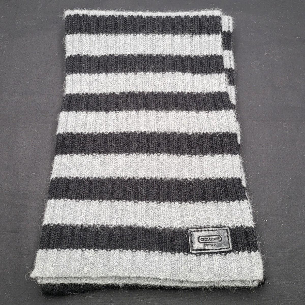 Authentic Coach brand scarf. Soft wool, rayon, Angora and Cashmere blend. Scarf measures 62" long x 9" wide. Black and grey stripes.
