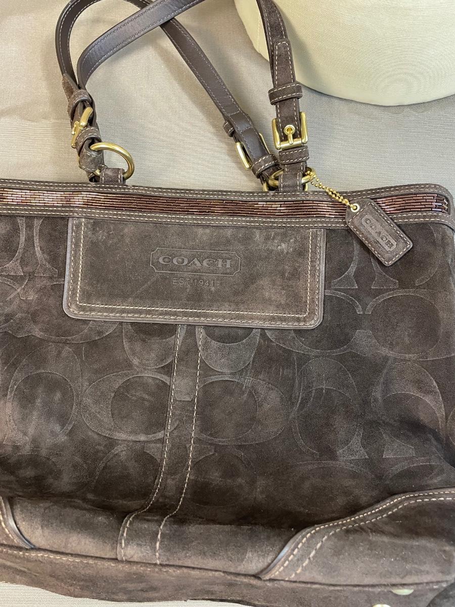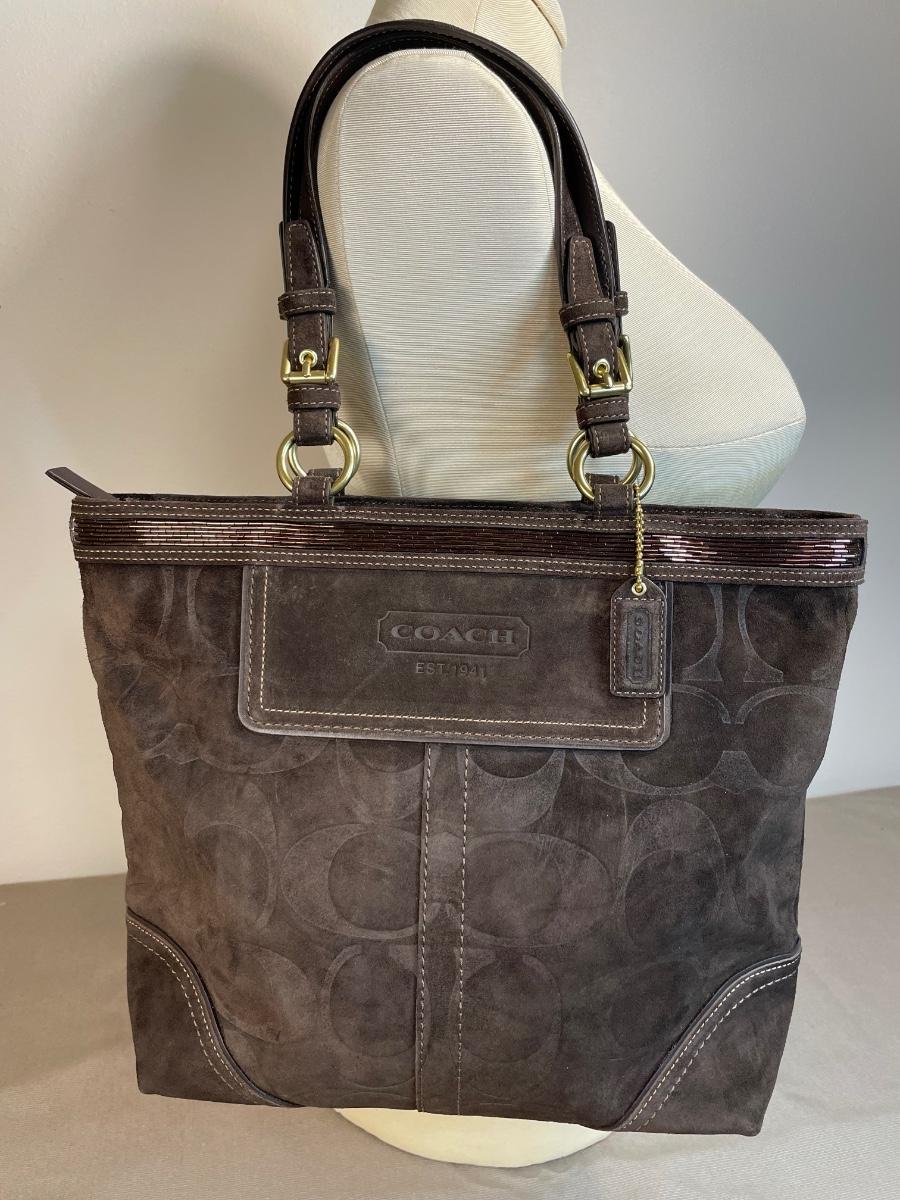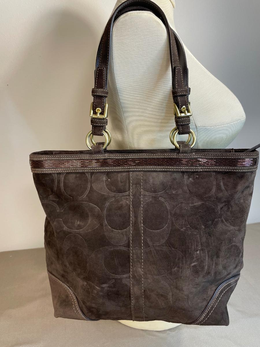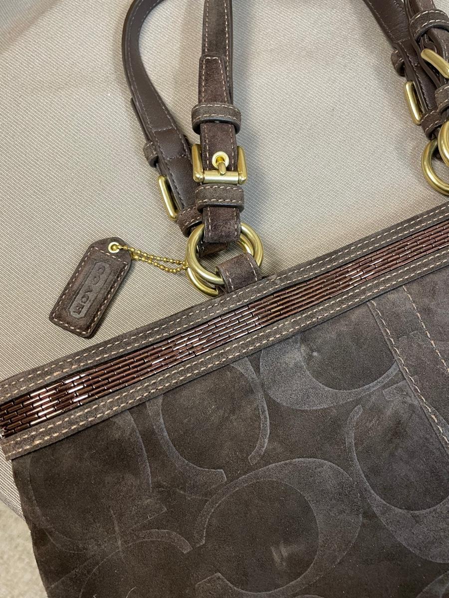 Coach Embossed Signature Suede Leather handbag
