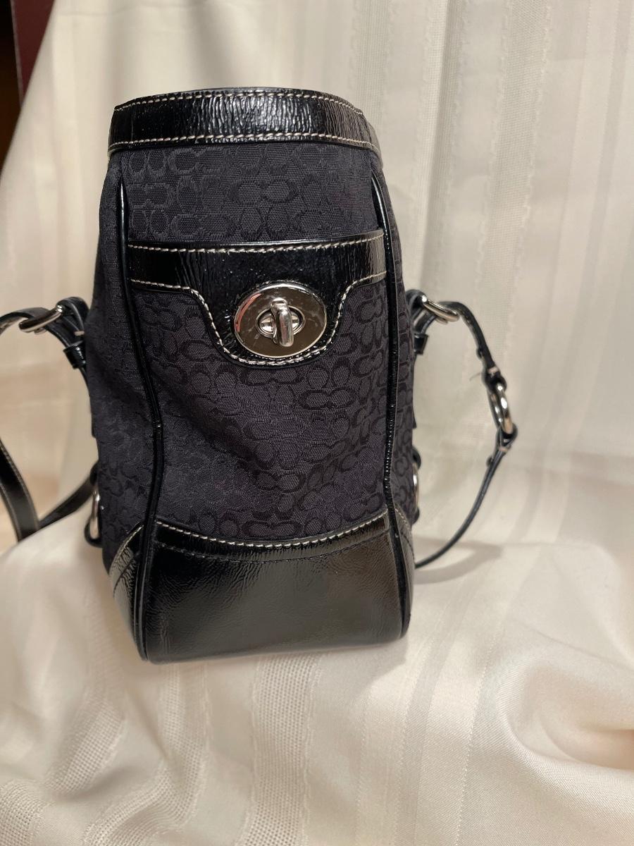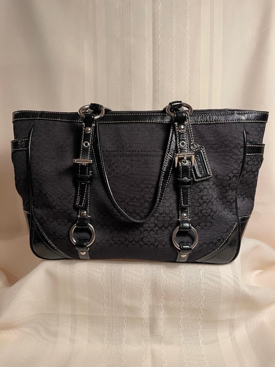 Gallery coach, tote signature, black Jacquard patent leather purse