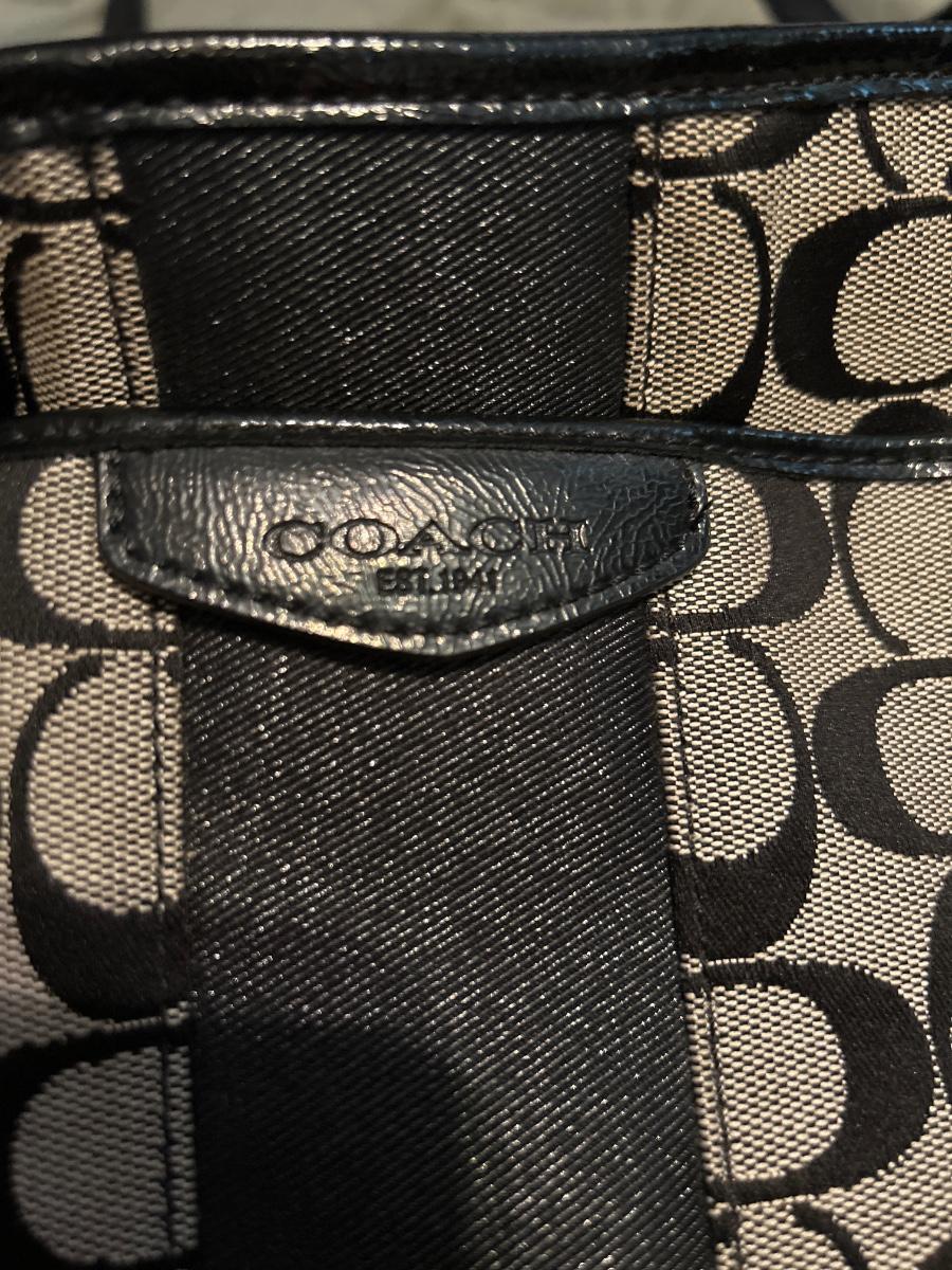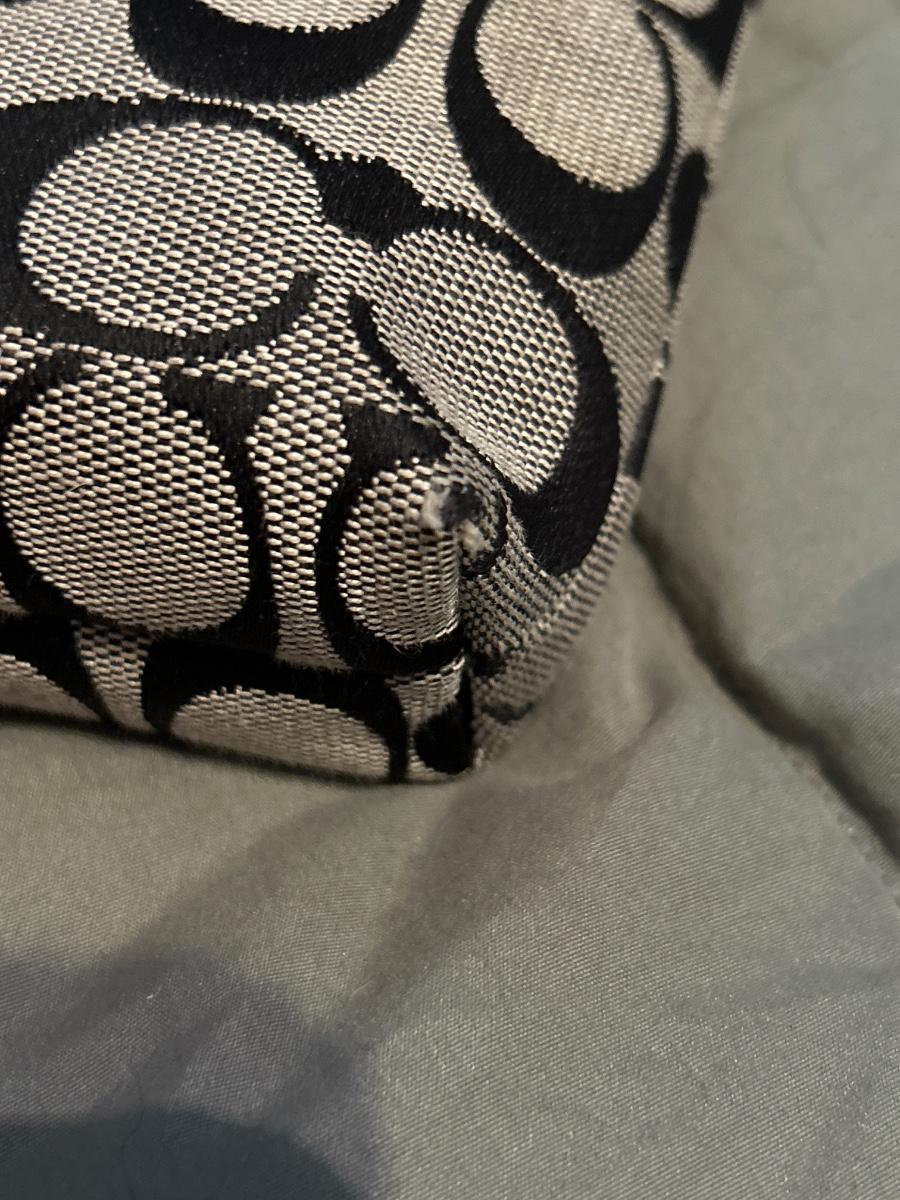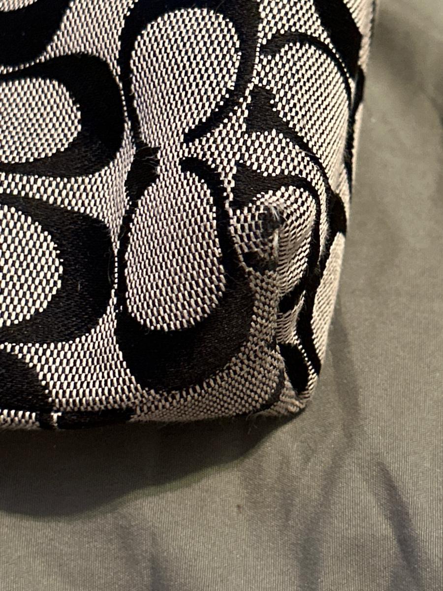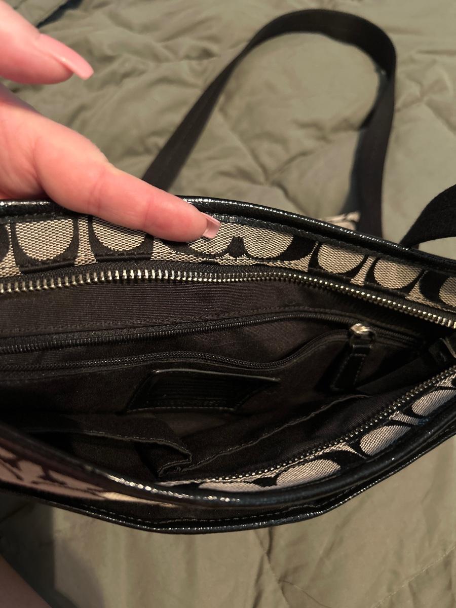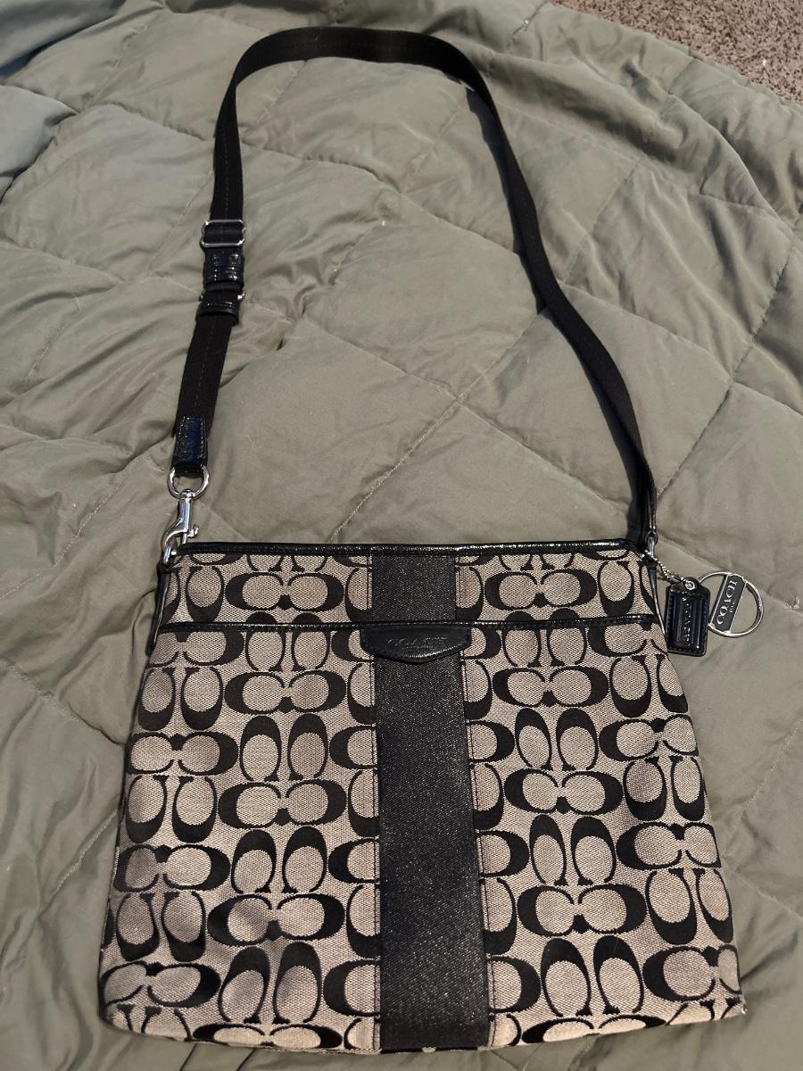 Black & gray crossbody, @ its longest the strap is 42” long. Good condition but see pics of corners.