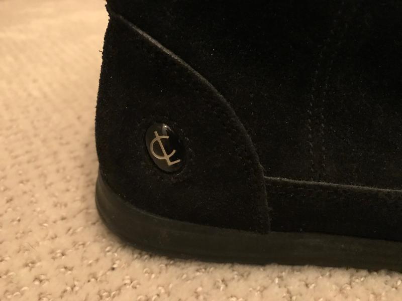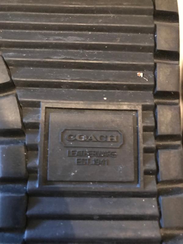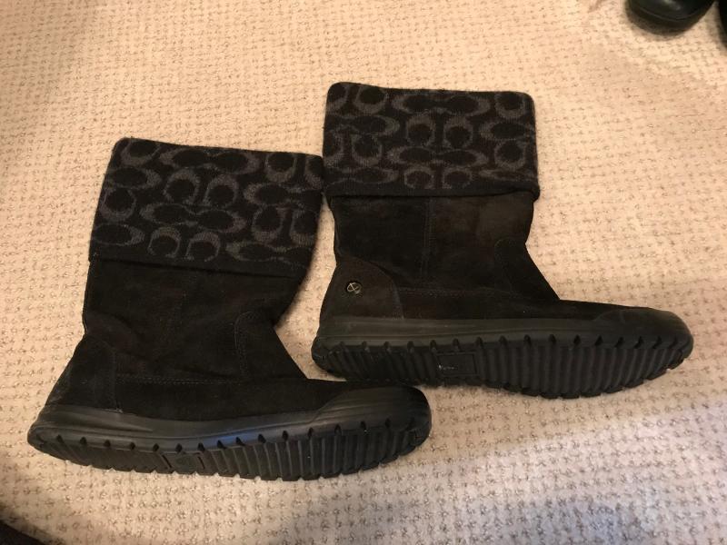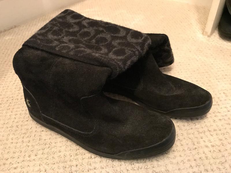 Size 7 1/2 Black suede with black Coach print fleece cuff. Great condition