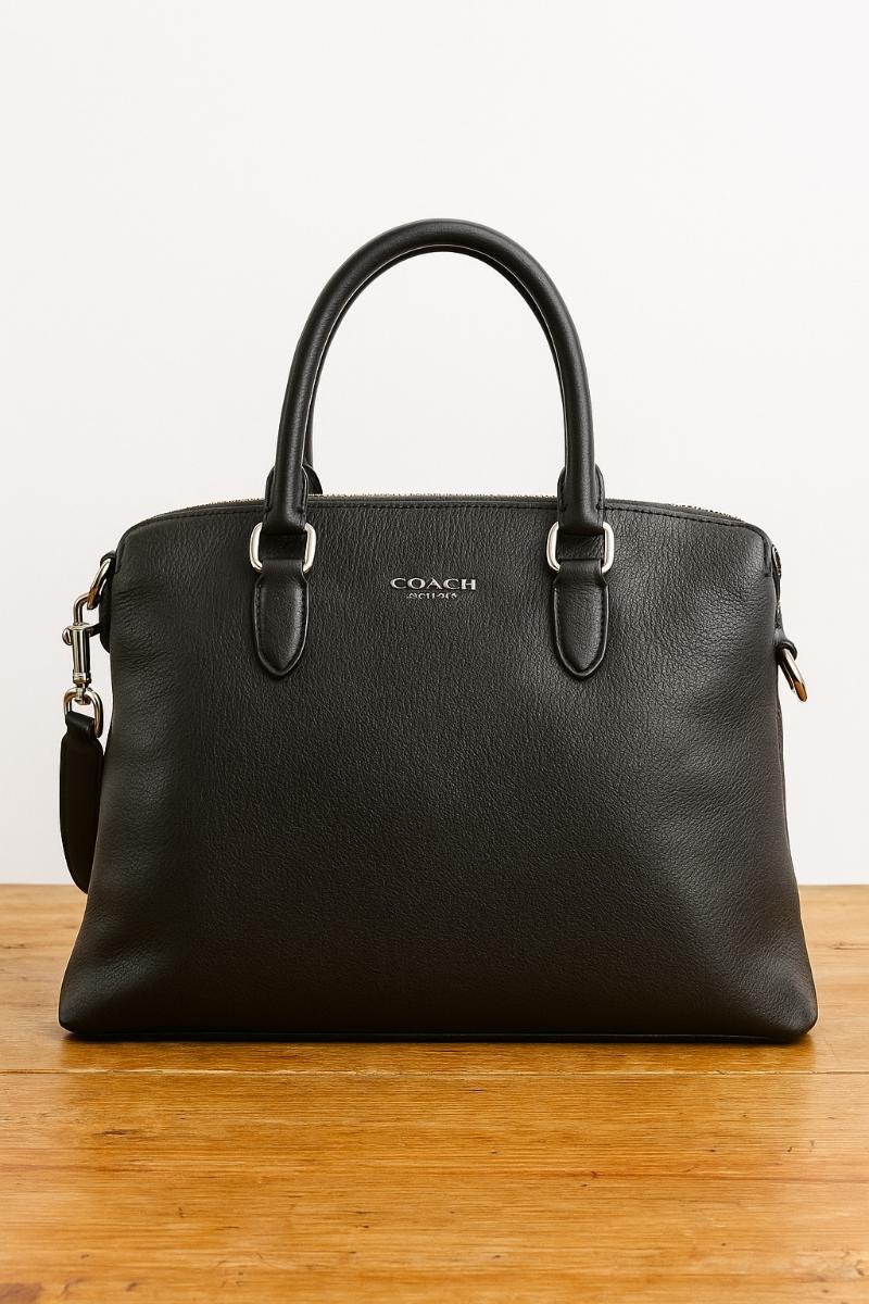 Coach Pebbled Leather Business Tote – Black, Unisex, Sleek & Spacious