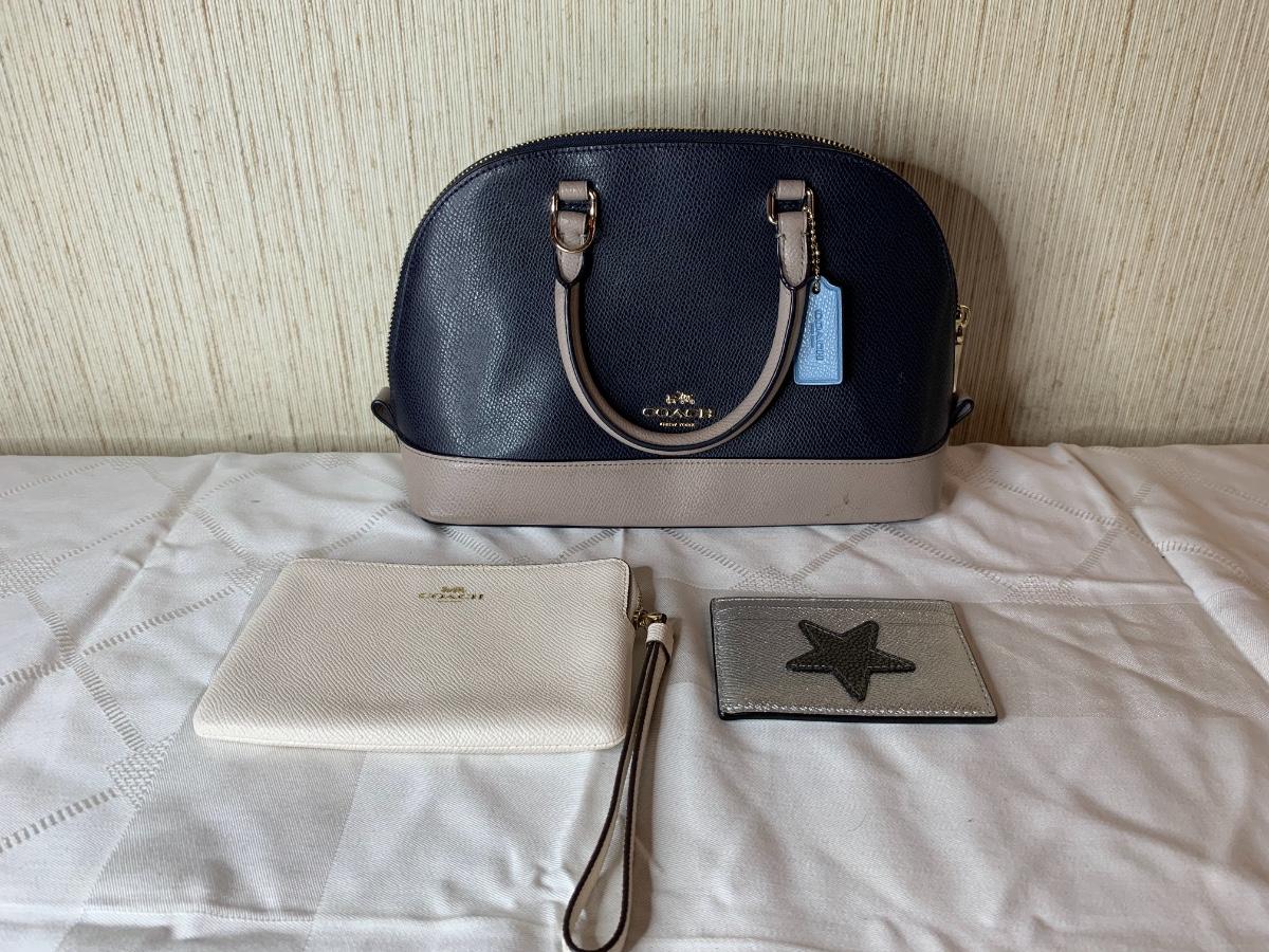 Coach medium sized purse (in great condition other than one stitch on the bottom of the purse), one wristlet (in excellent condition) and one star card holder (in excellent condition)