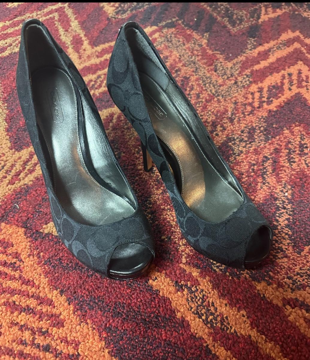 Coach Signature Canvas Peep-Toe Pumps Heels - Black Size 8 - Excellent Pre-Owned Condition