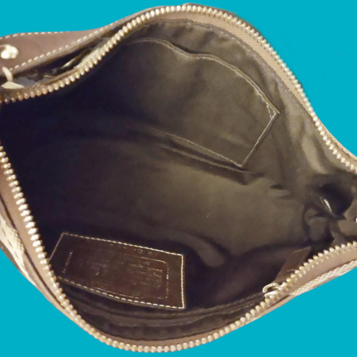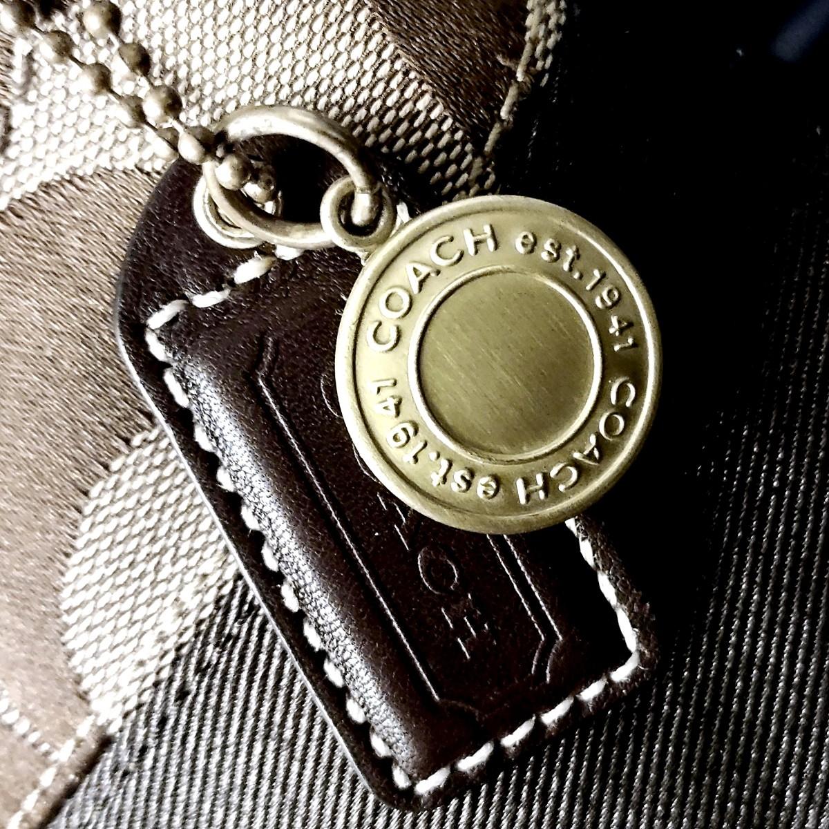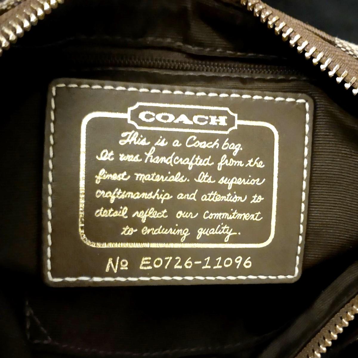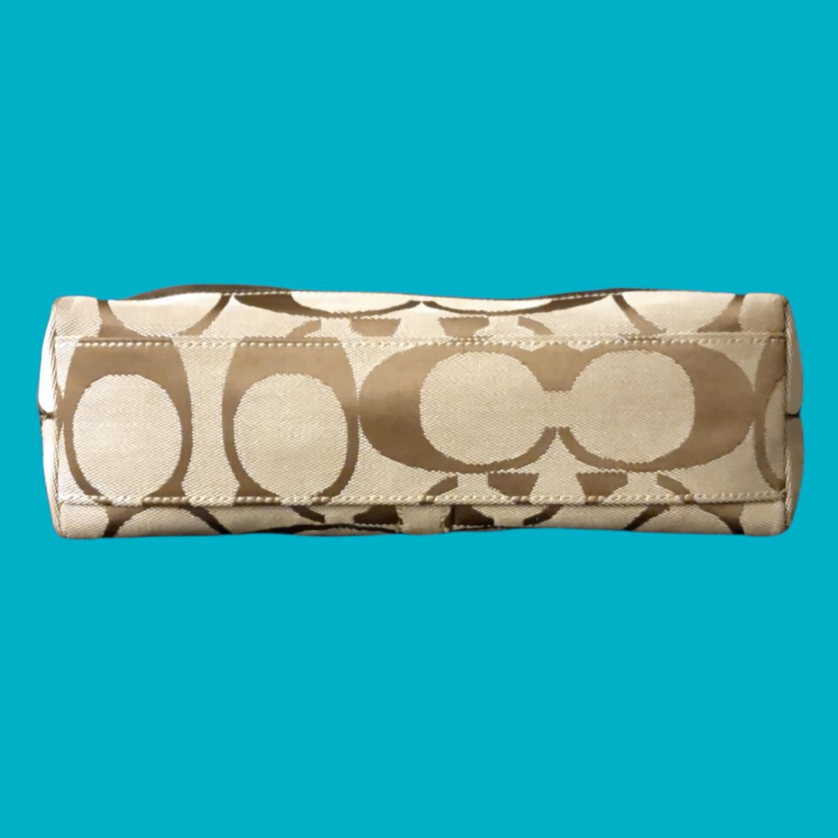 Coach Khaki & Brown Signature Stripe Small Shoulder Bag w/ Brown Leather Trim, Adjustable Strap & Brass Hardware