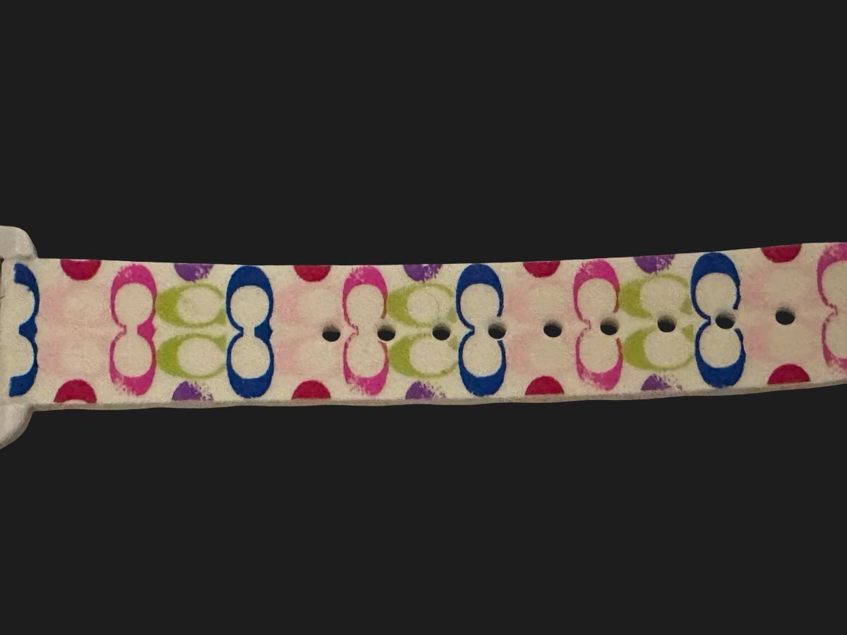 Includes original tag and protective film on front and back of the watch face. The ‘C’ logo on the inside of the band show slight fading—see detailed photos. Features a rubber band. Watch will need a new battery.