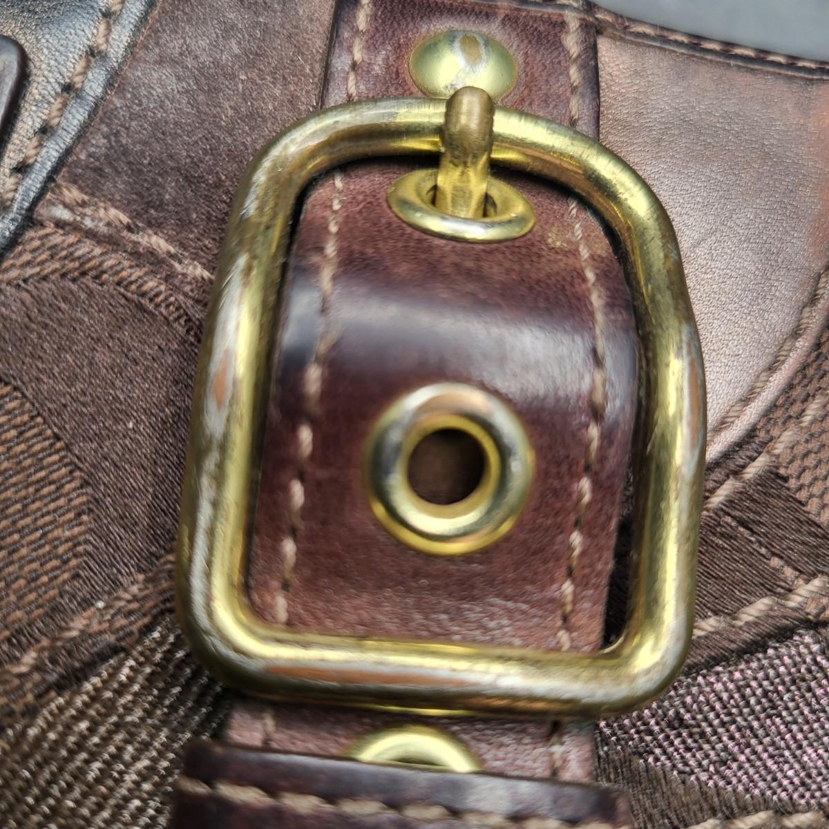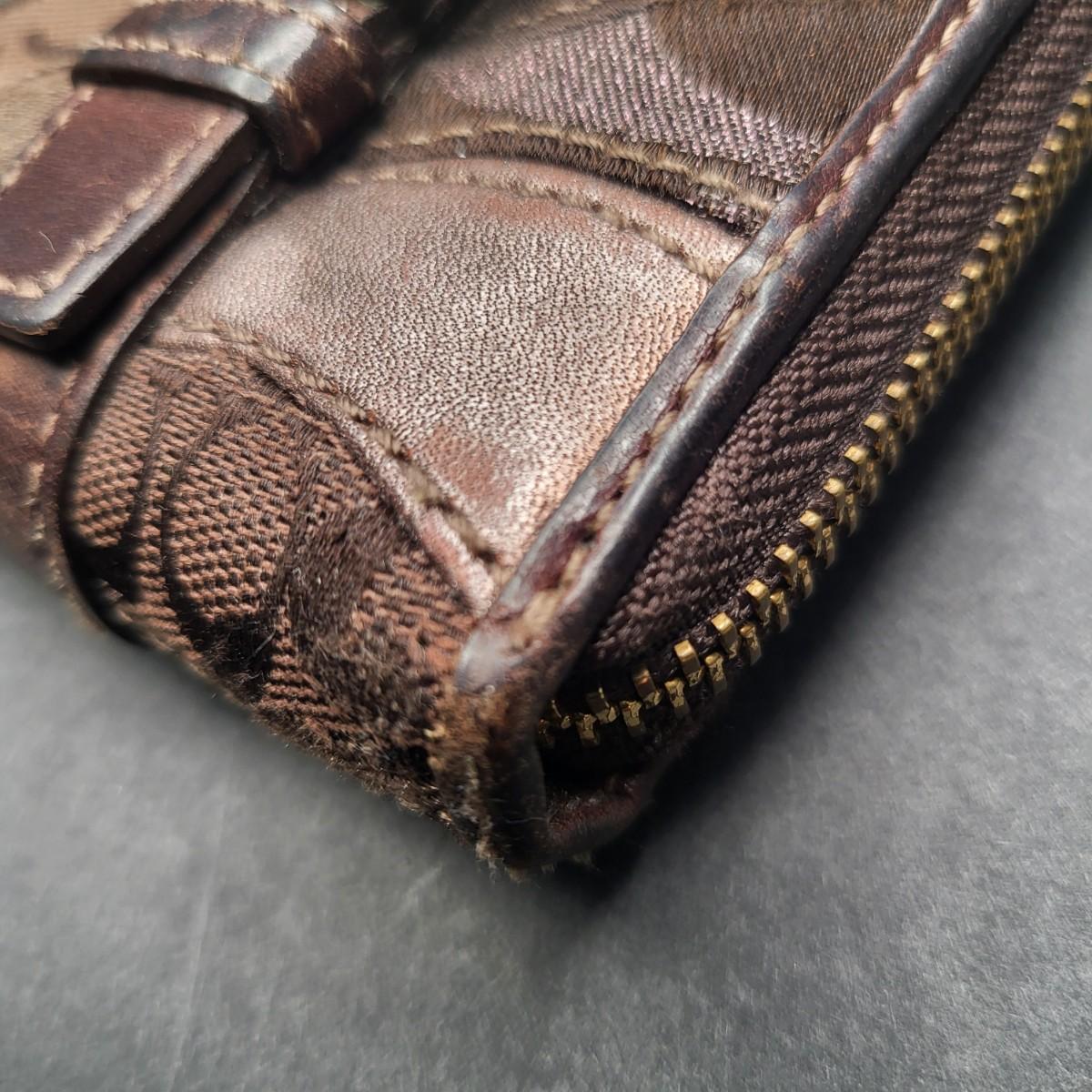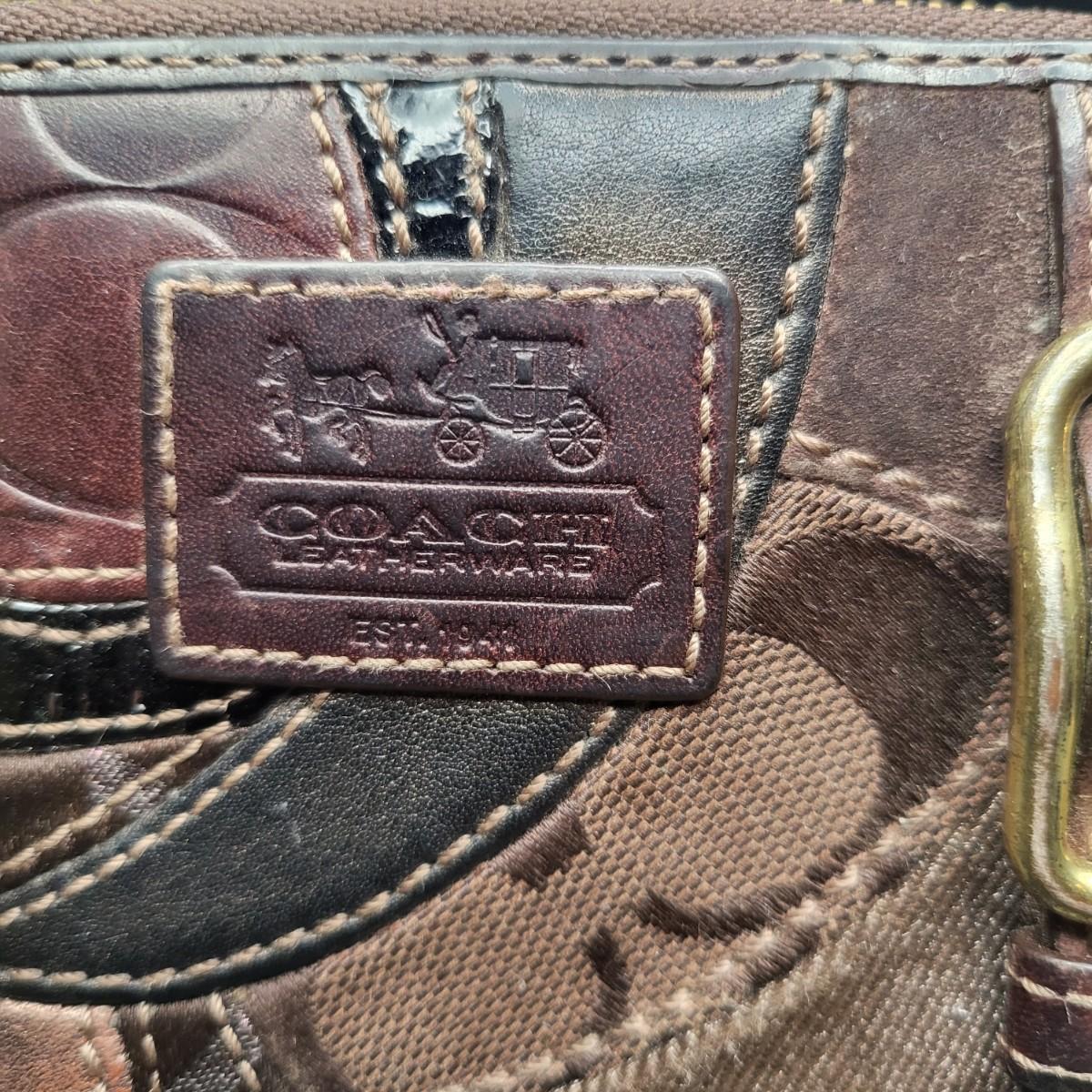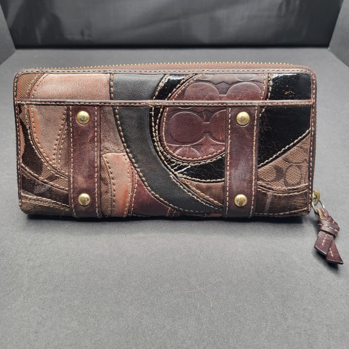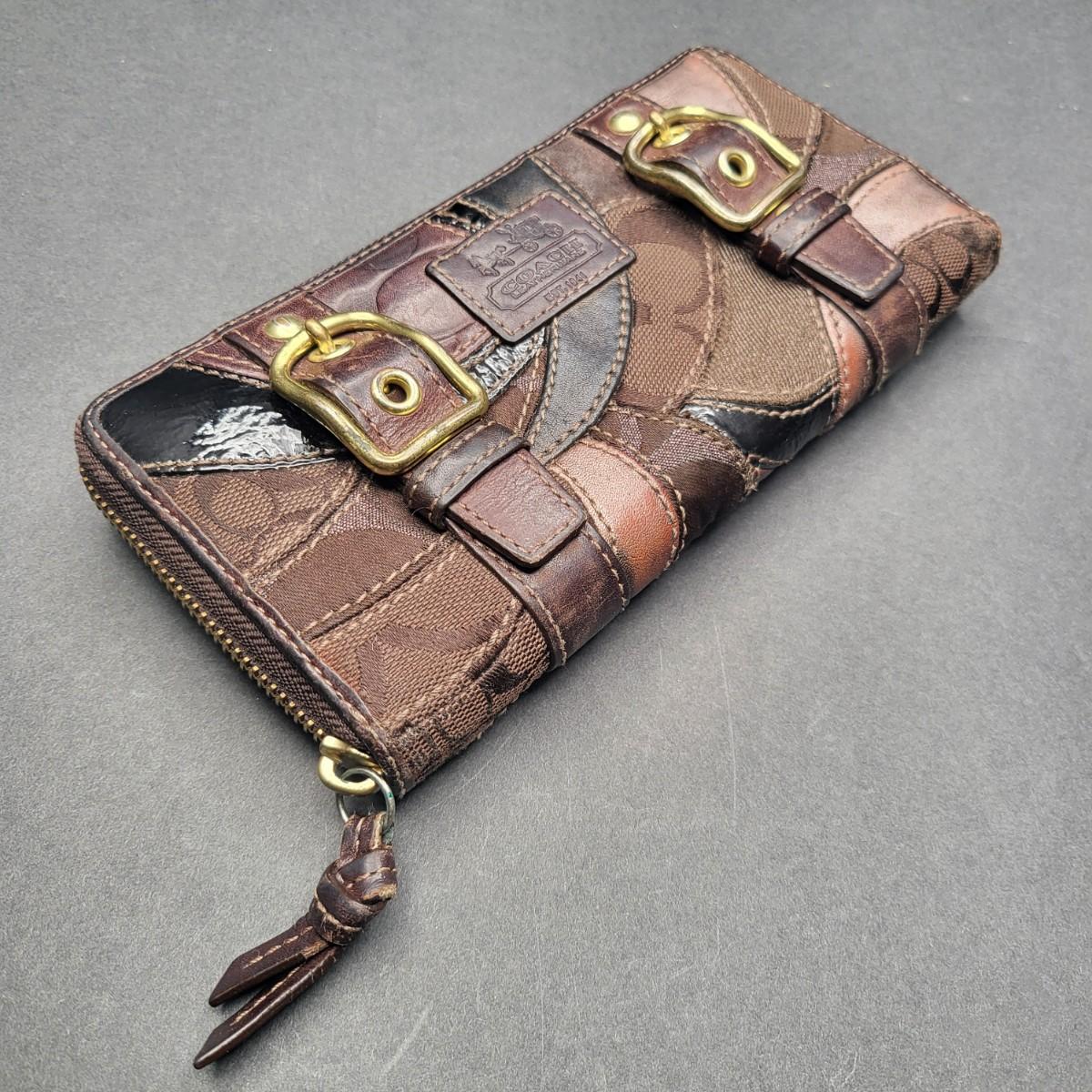 Brown Coach wallet, goldtone buckle accents, zip around. Lots of interior compartments/slots. Used but in good condition.