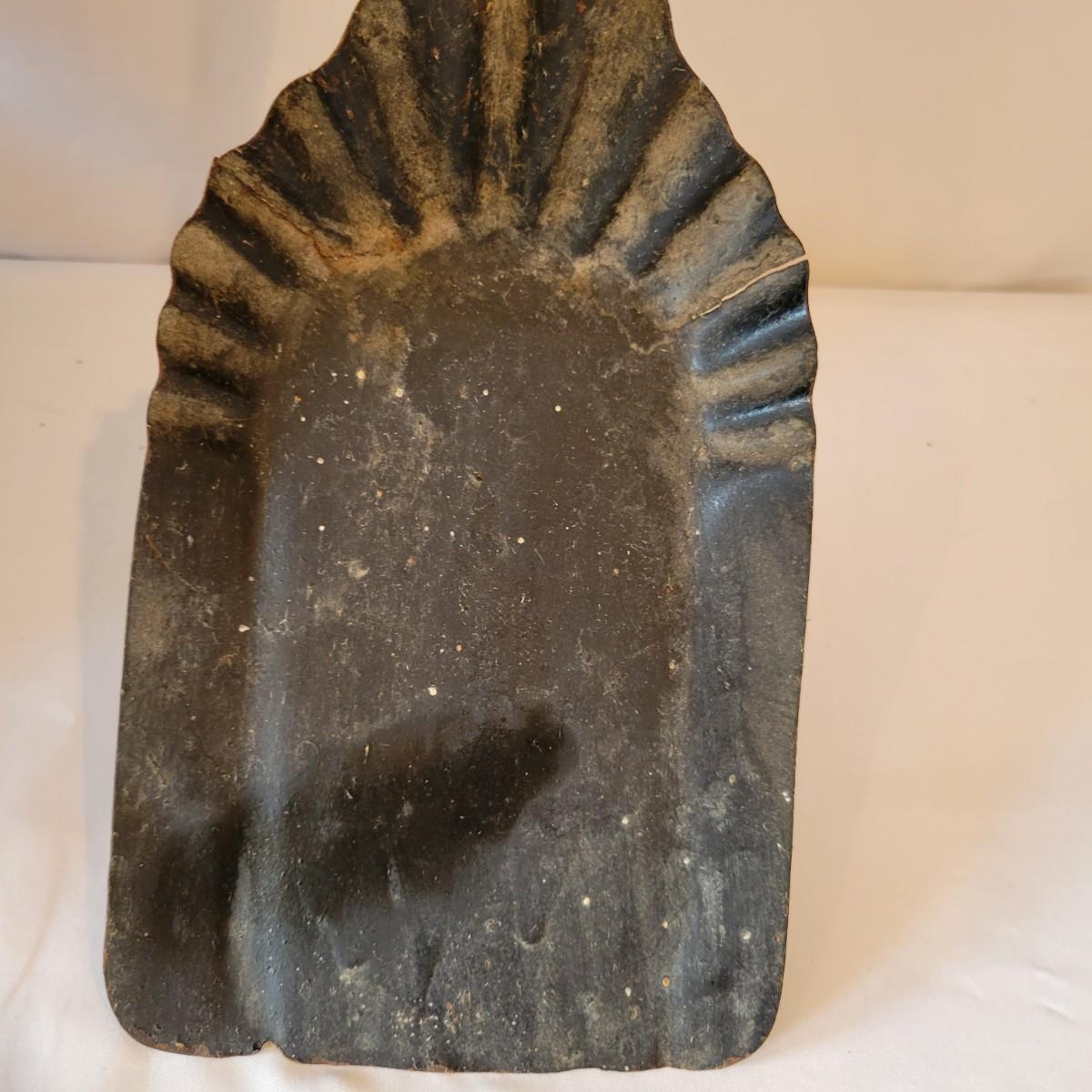 A Reeves coal bucket that measures approximately 17" x 12.5" x 10.5"H. Also included is a small straw broom, two small ash shovels and a brass and iron ladle. Shipping available