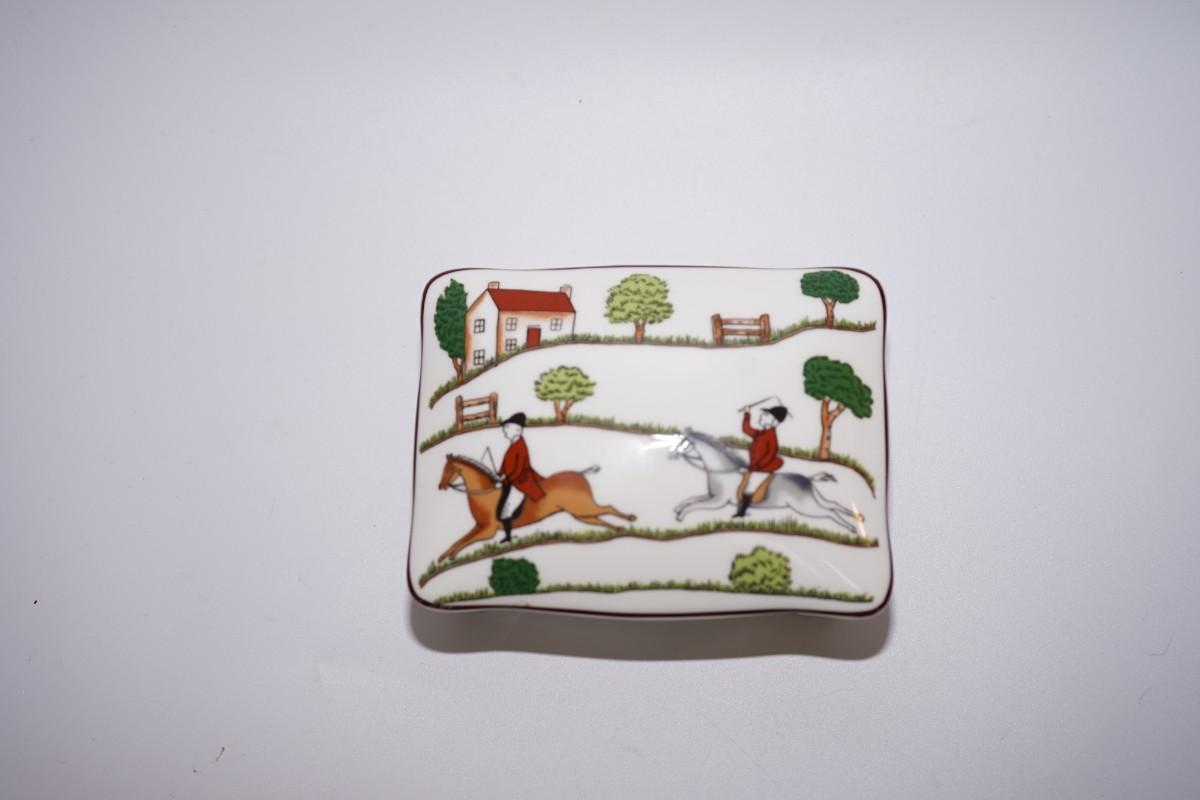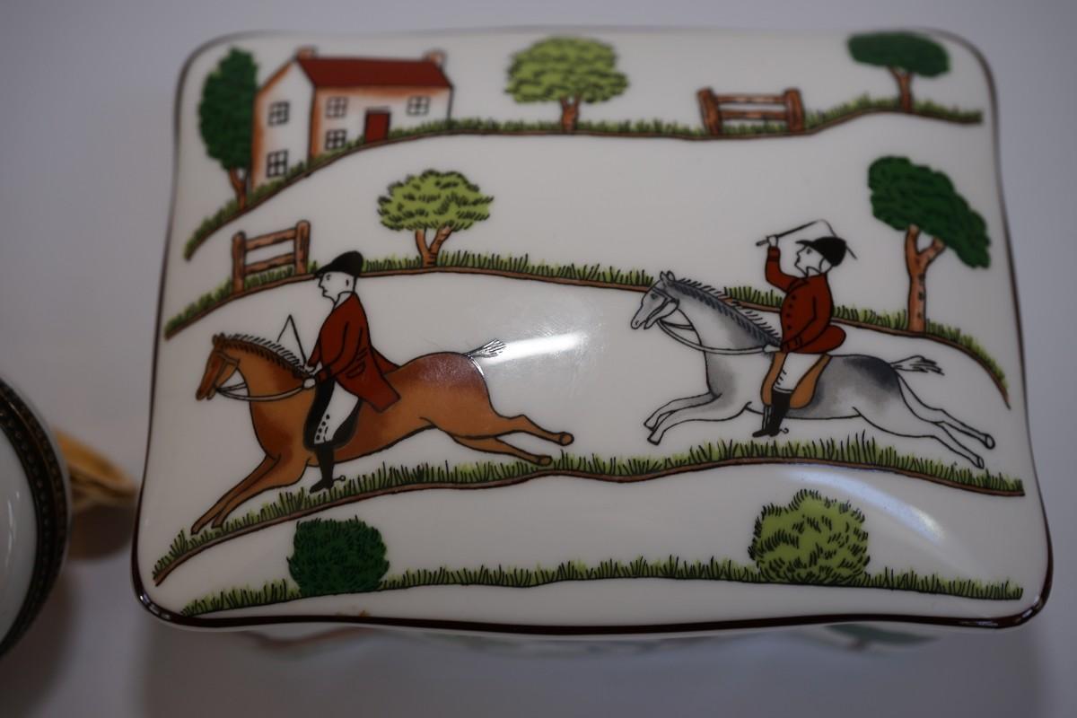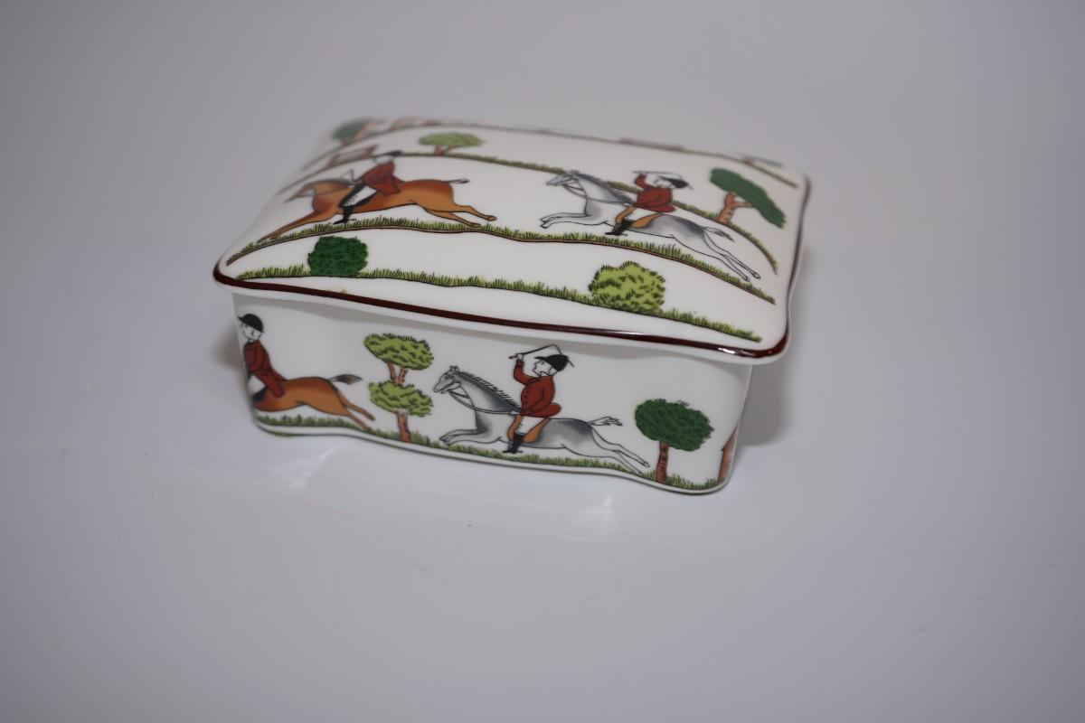 COALPORT ENGLISH FINE BONE CHINA -EQUINE JUMPER "HUNTING SCENE" JEWELRY BOX