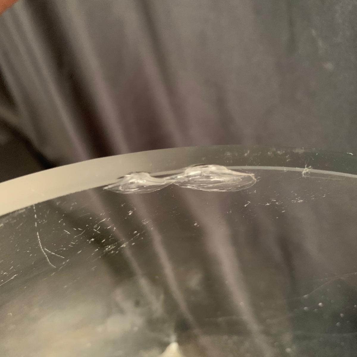 Large acrylic vases measure, 9.5”D x 20.5H. With a 6.5”D at the base.