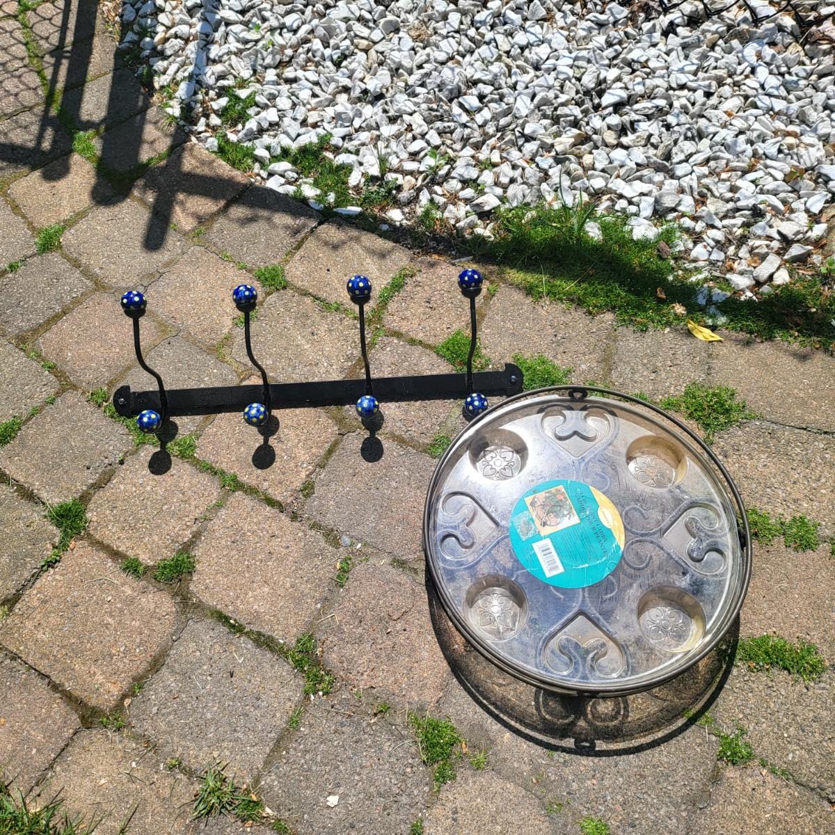 Nice large plant stand on wheels and hand painted ceramic coat rack.