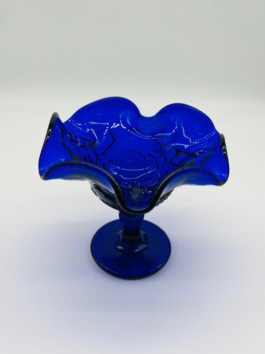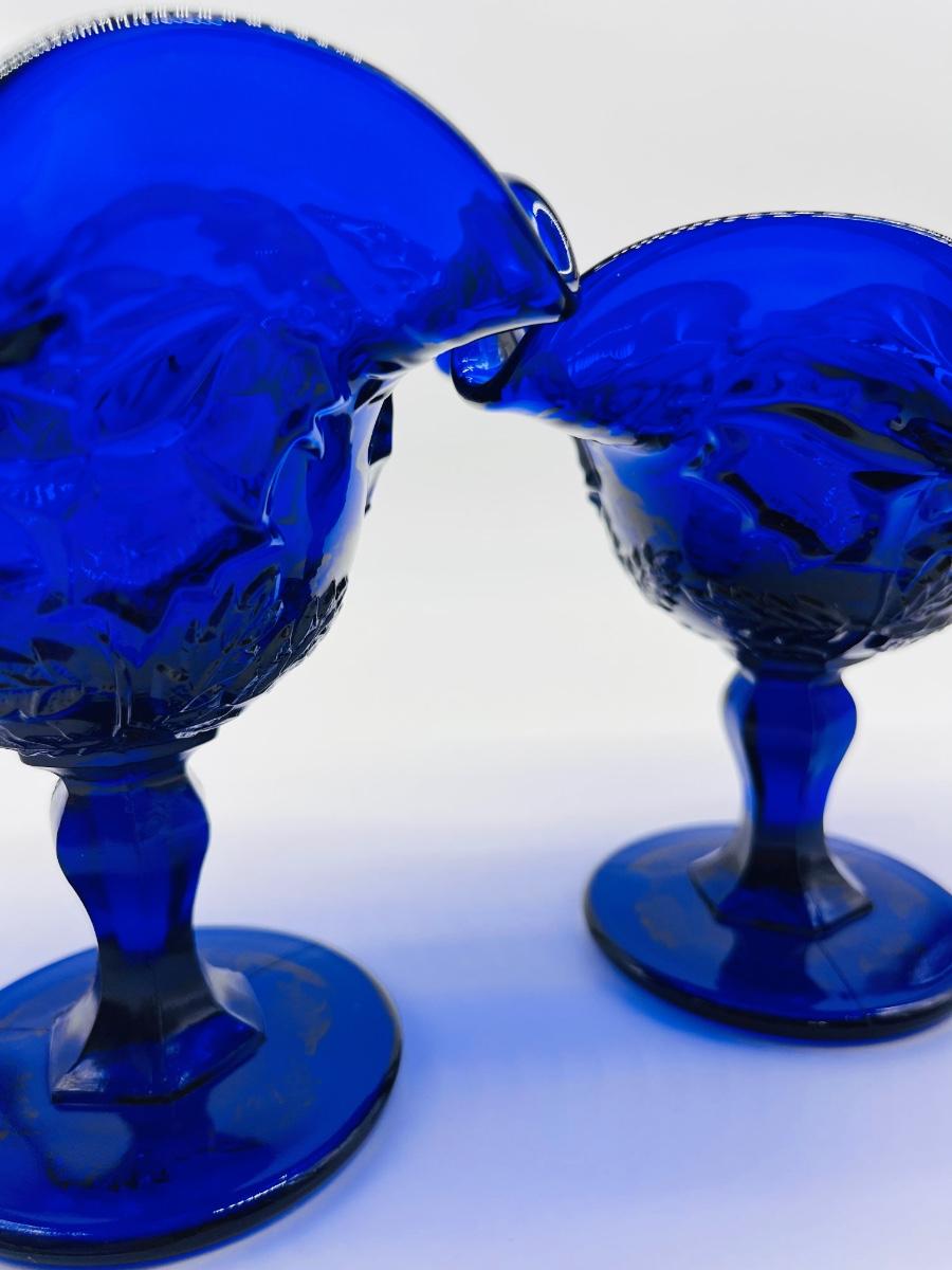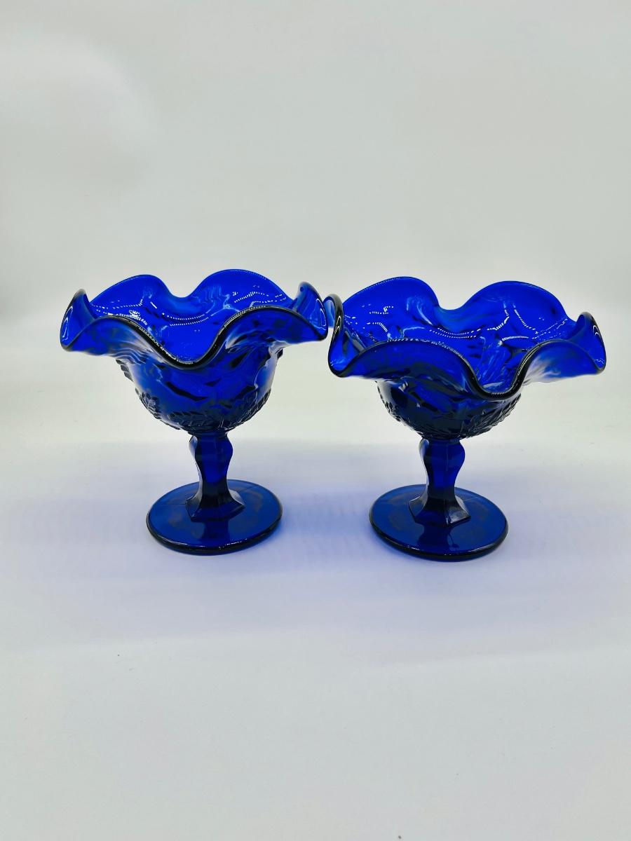 Pair Cobalt Blue ~ Footed Ruffled Edge Dishes