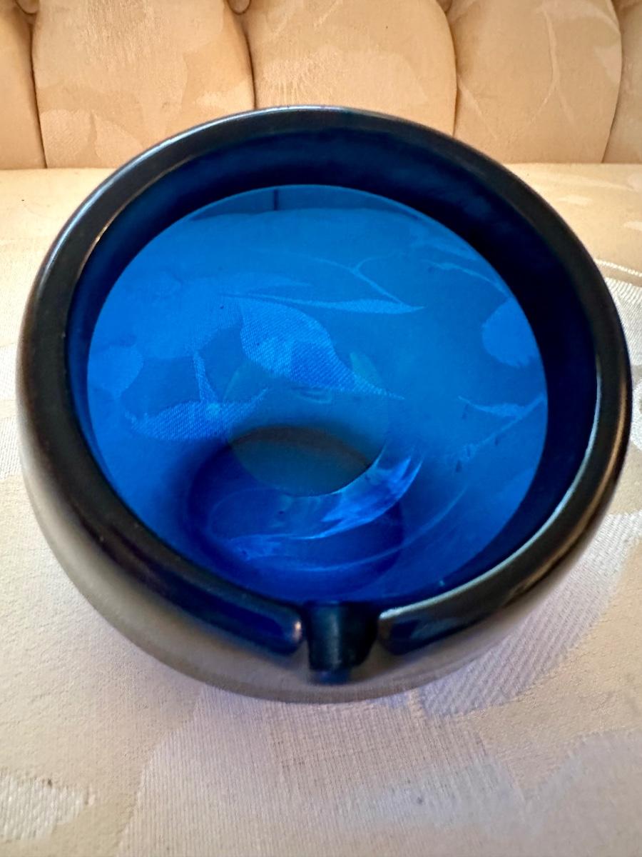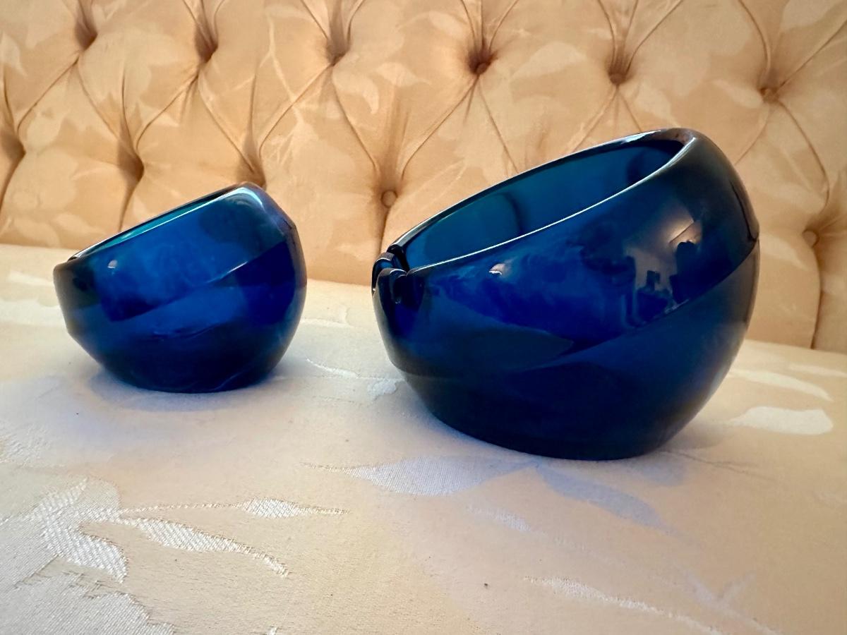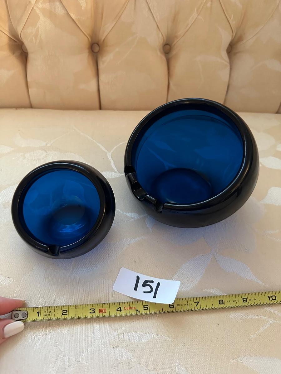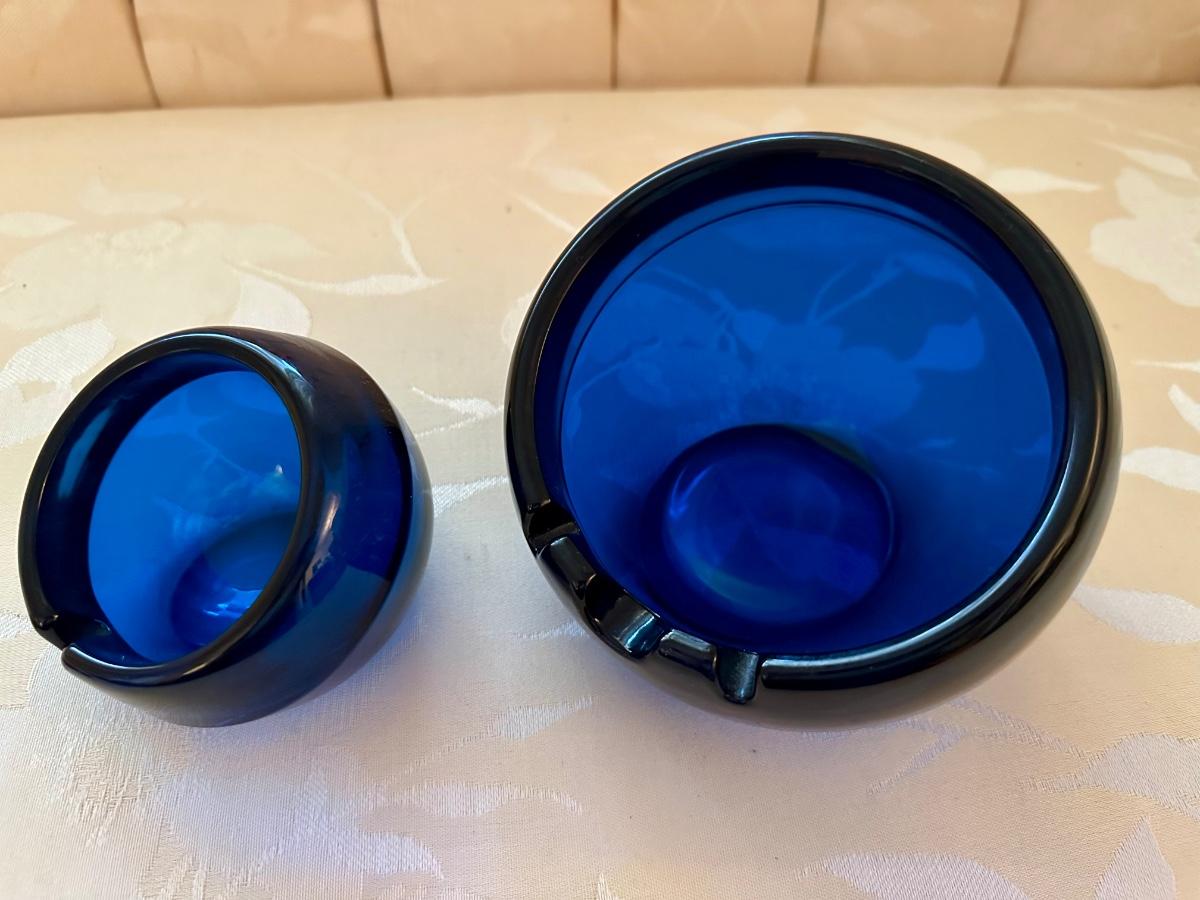 COBALT BLUE ART GLASS ASHTRAY LOT