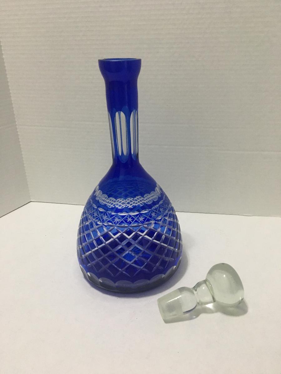 Large Cobalt Blue Bohemian Crystal Decanter.